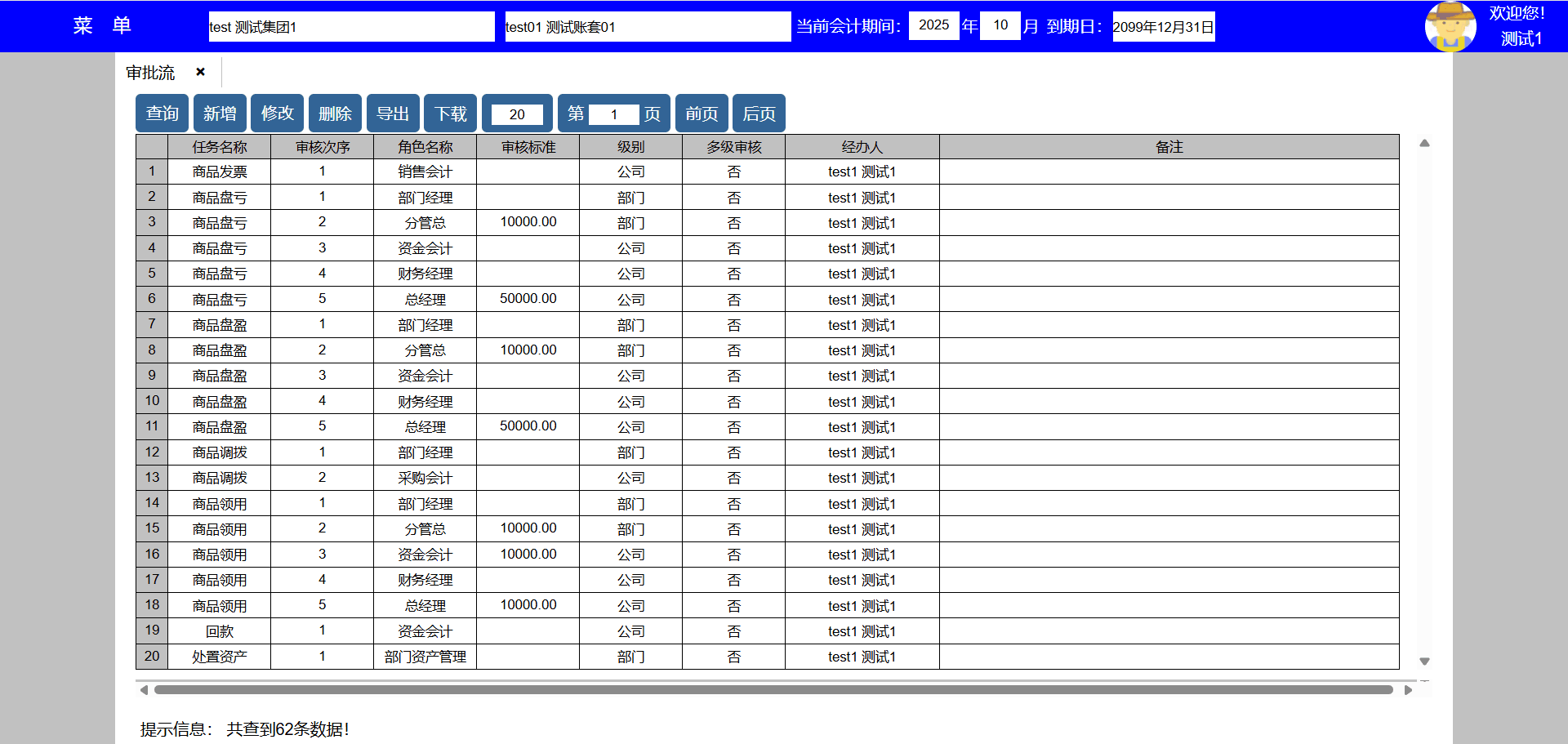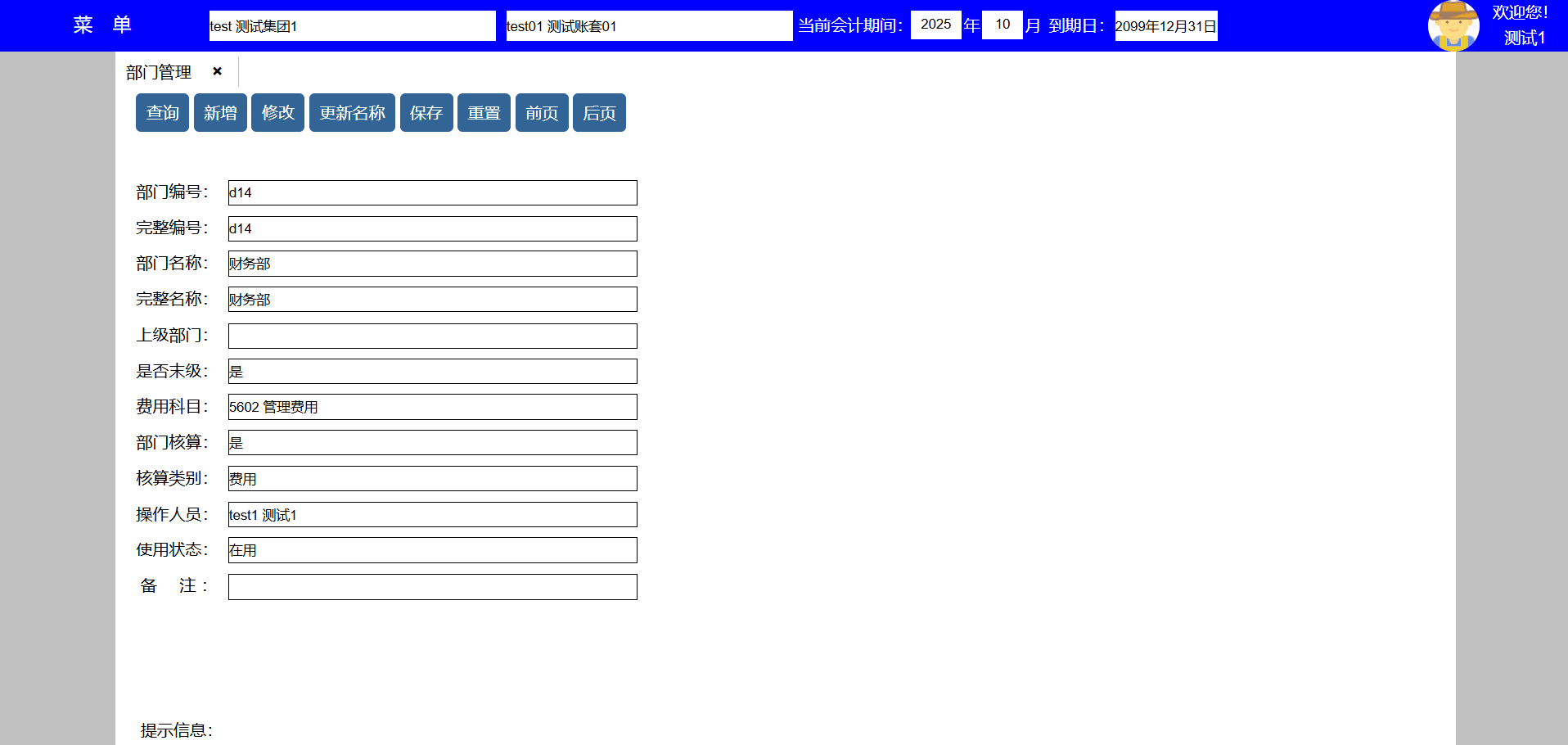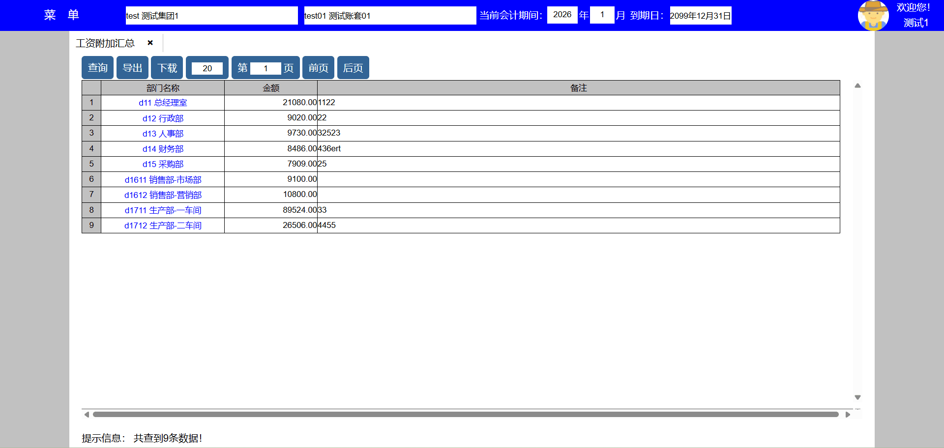 | test141 | test141 | 财务部 | 员工,人事,会计,资料,系统,资产,采购,销售,库房,生产,项目,发票 | 财务经理 |