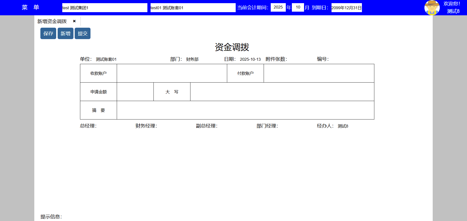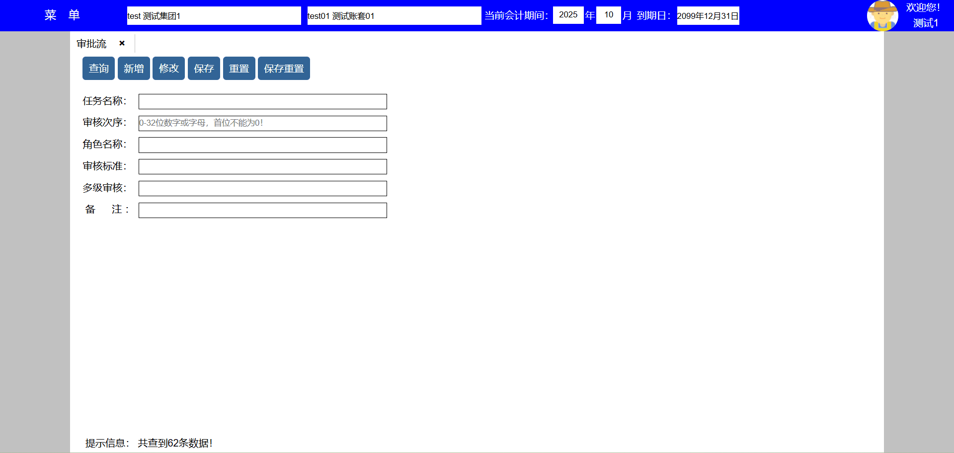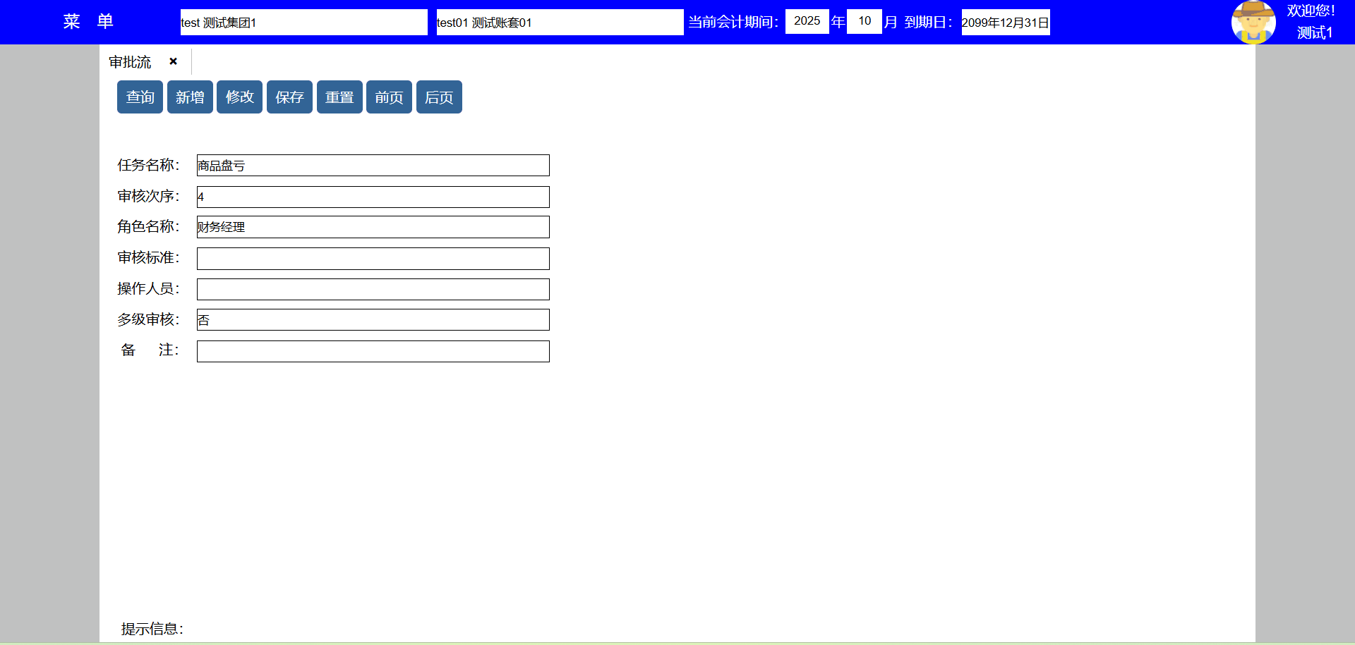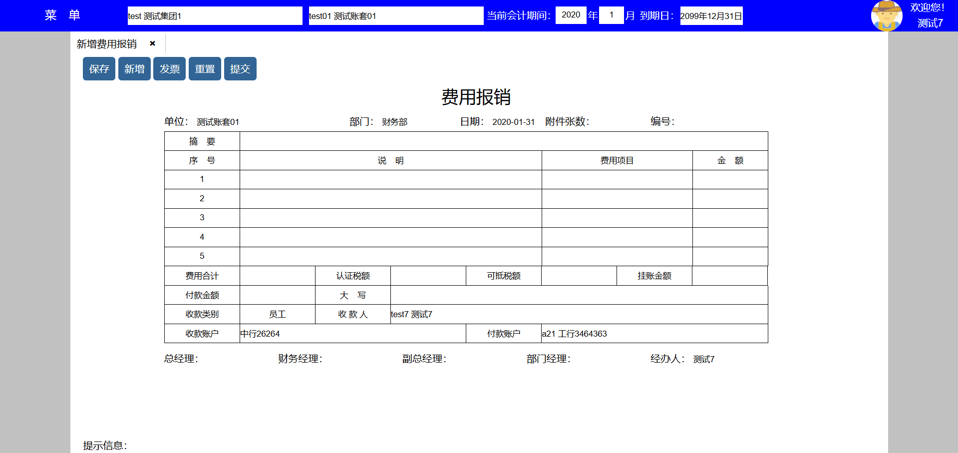 | test141 | test141 | 财务部 | 员工,人事,会计,资料,系统,资产,采购,销售,库房,生产,项目,发票 | 财务经理 |