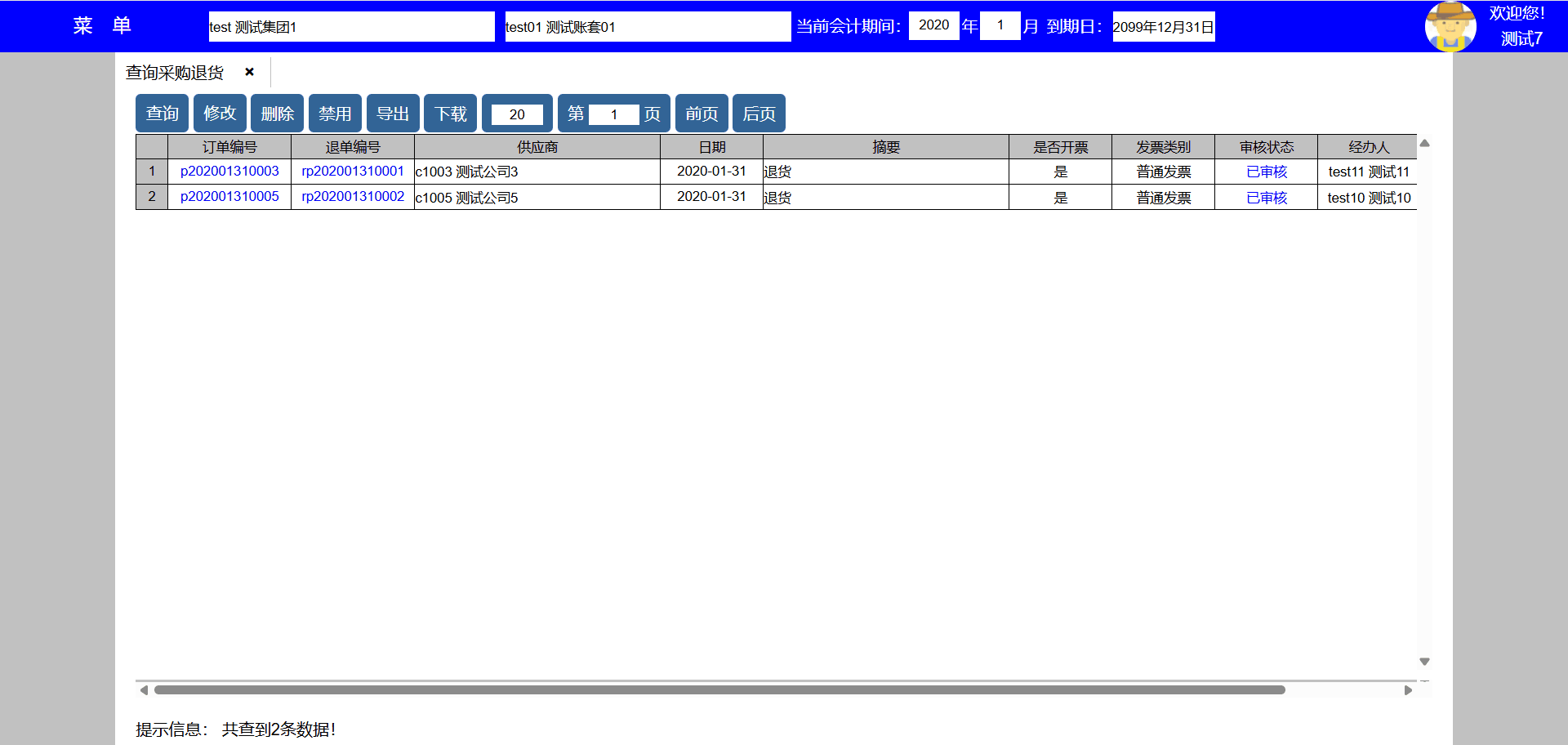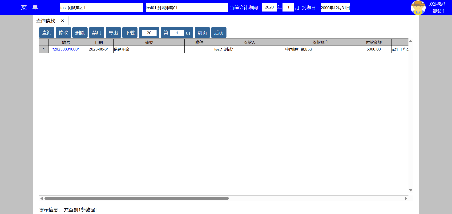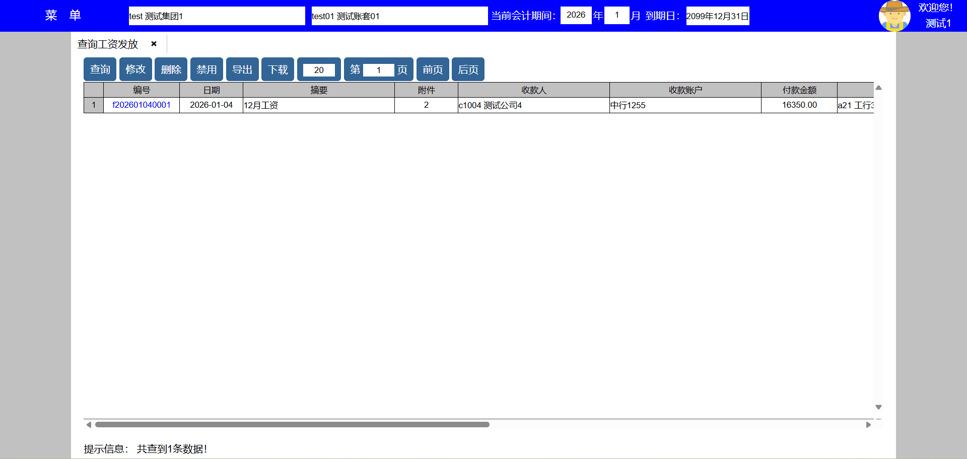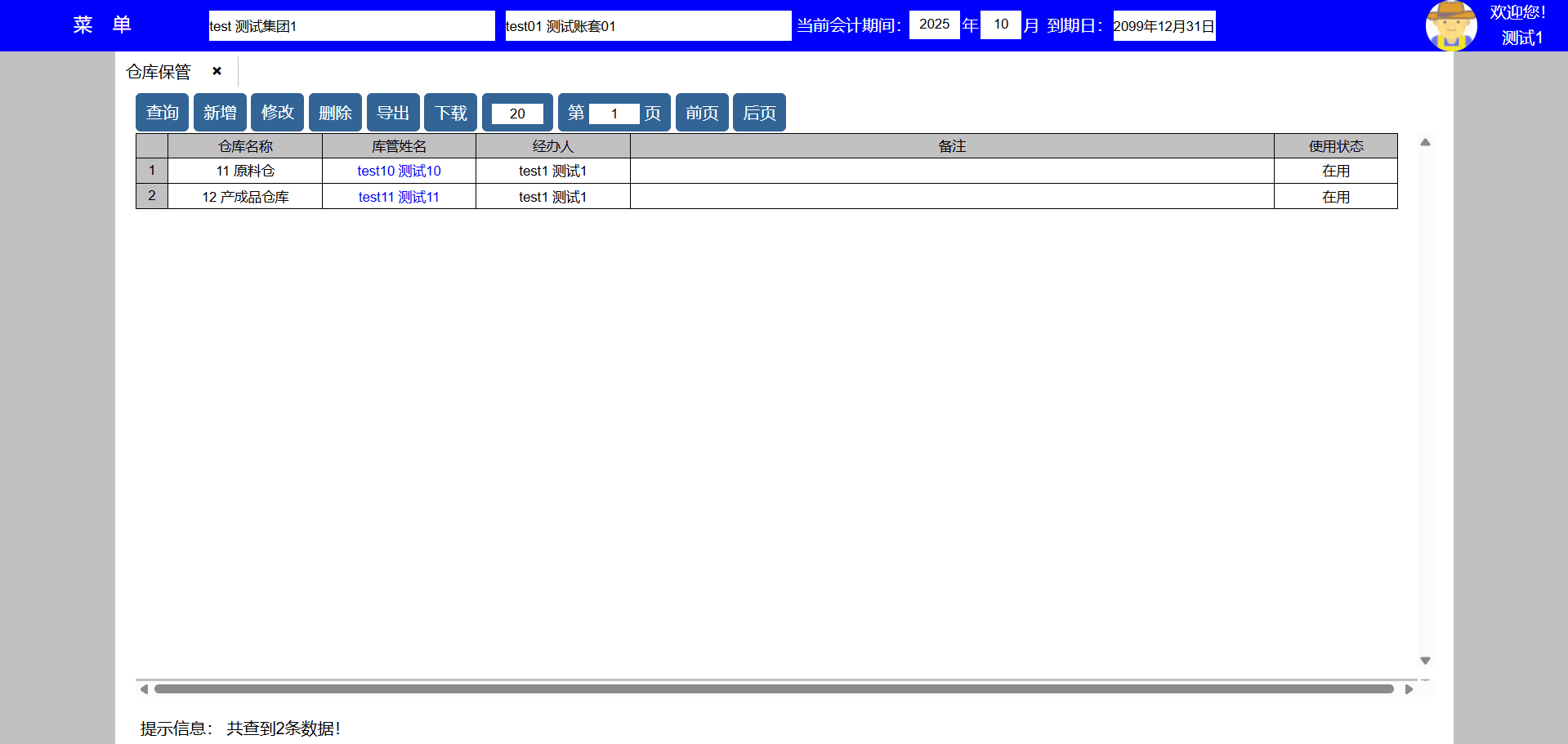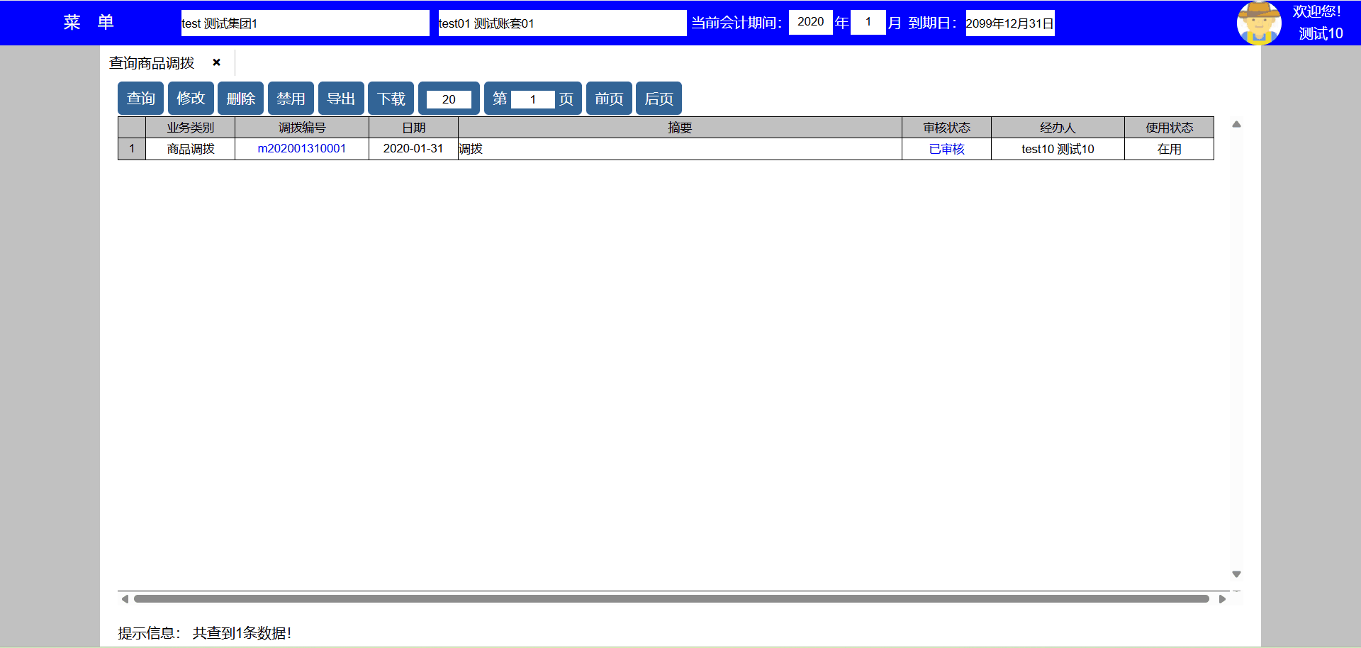 主要功能:1、查询、新增、修改、禁用、导出、下载、每页显示行数、显示页数、向前翻页、向后翻页。