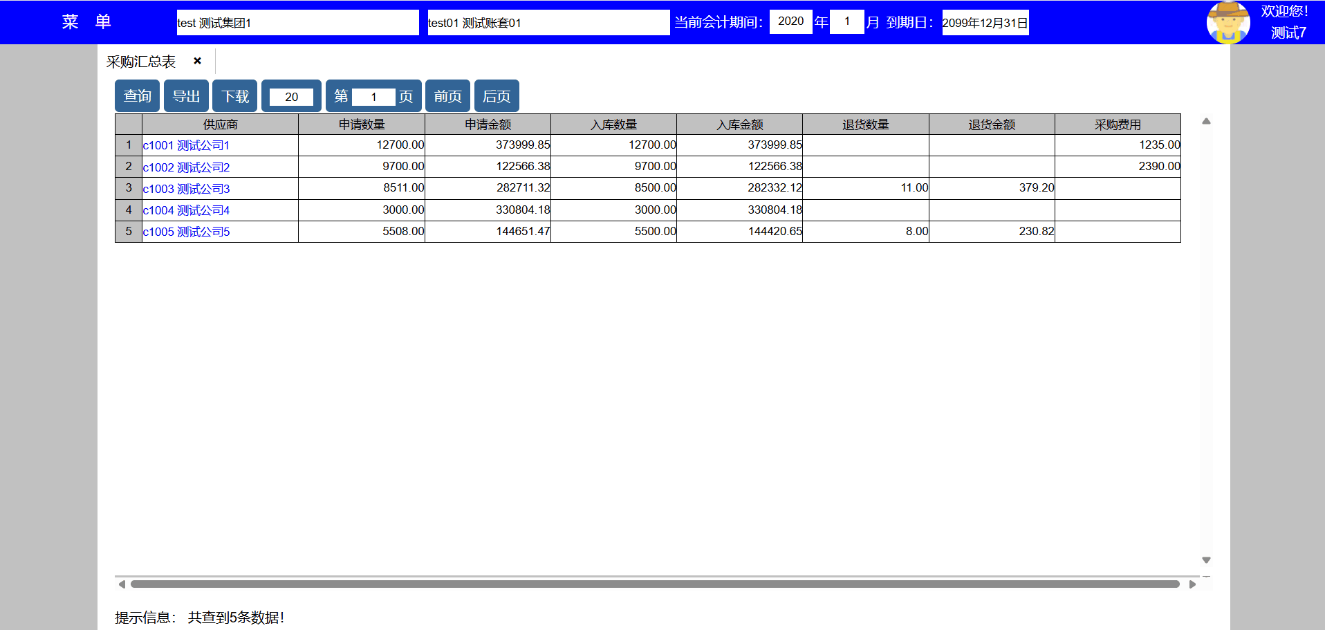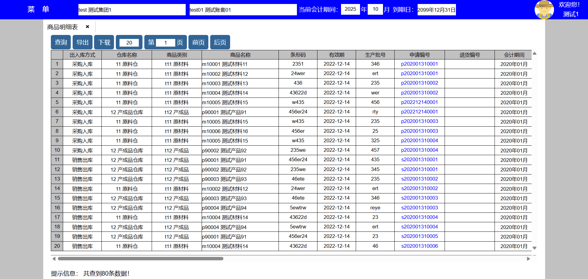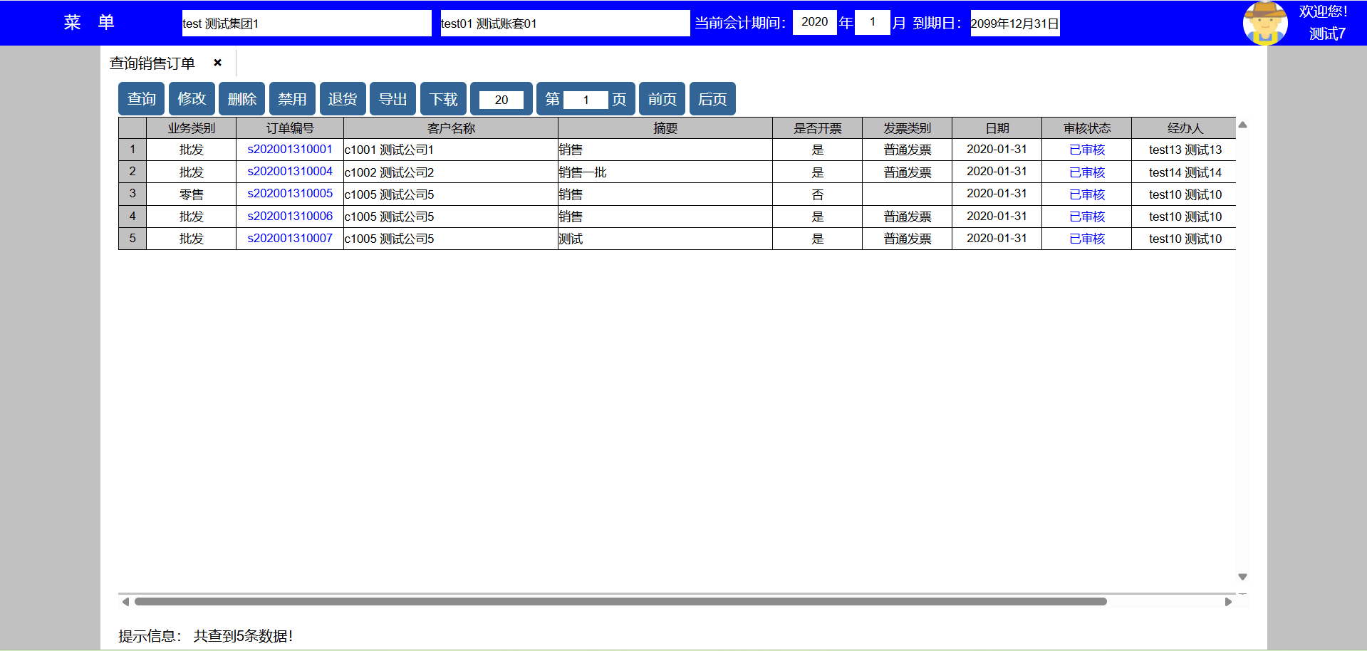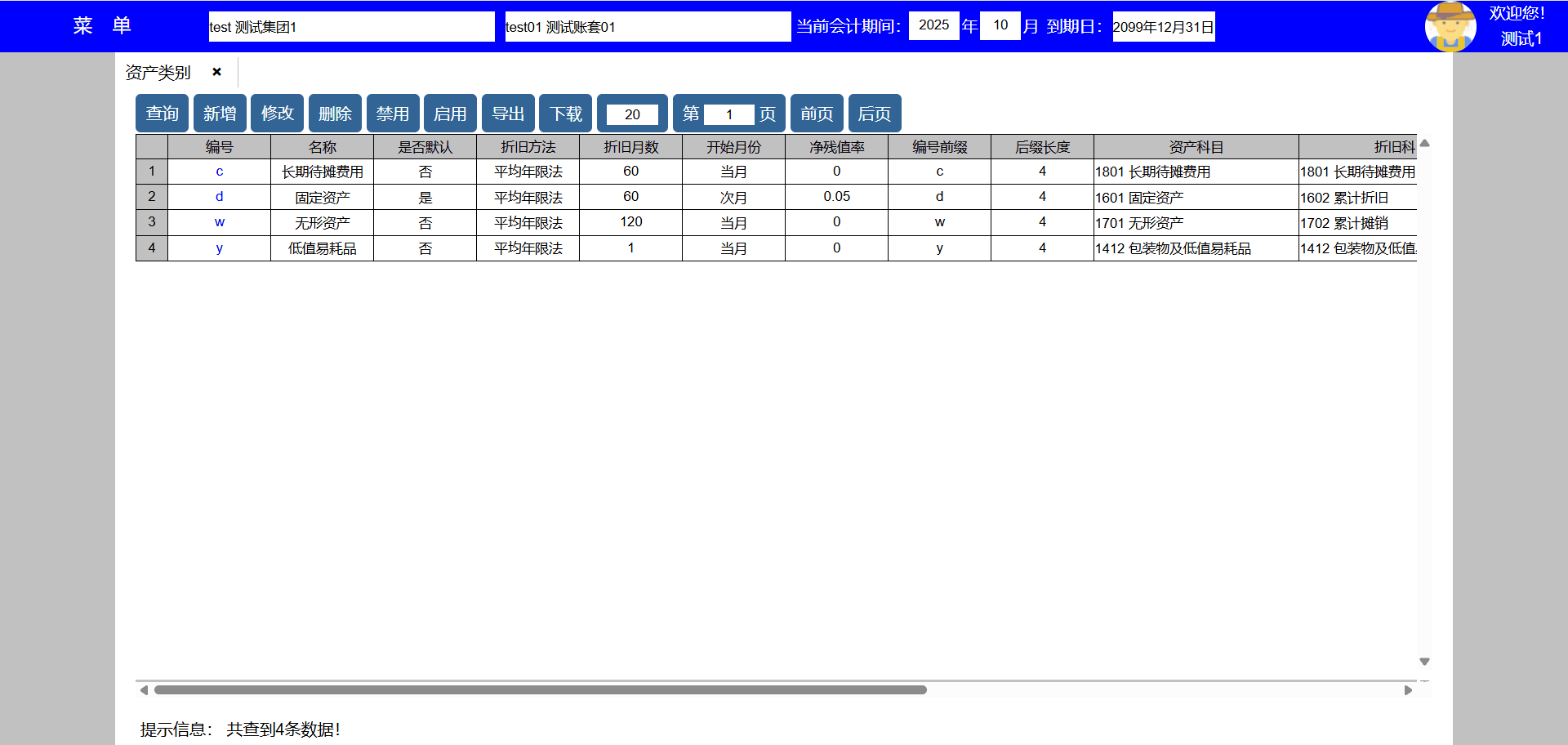 主要功能:1、查询、新增、修改、禁用、导出、下载、每页显示行数、显示页数、向前翻页、向后翻页。
