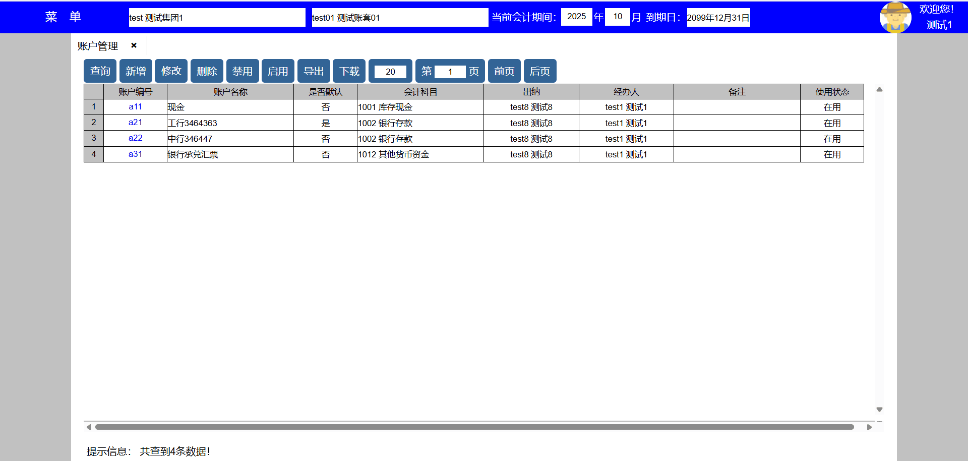 下表是测试系统账号,系统持续更新中,敬请广大财务同行多提宝贵意见!