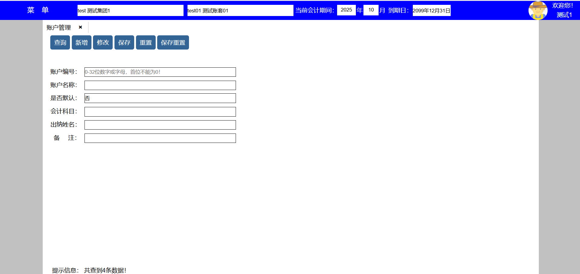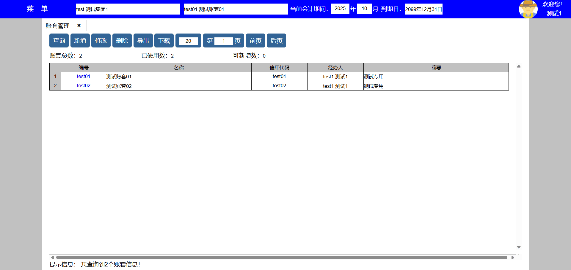 使用说明:1、已使用数小于账套总数时,点击新增按键可以新增账套,并转到新增界面,账套编号必须唯一不能重复;