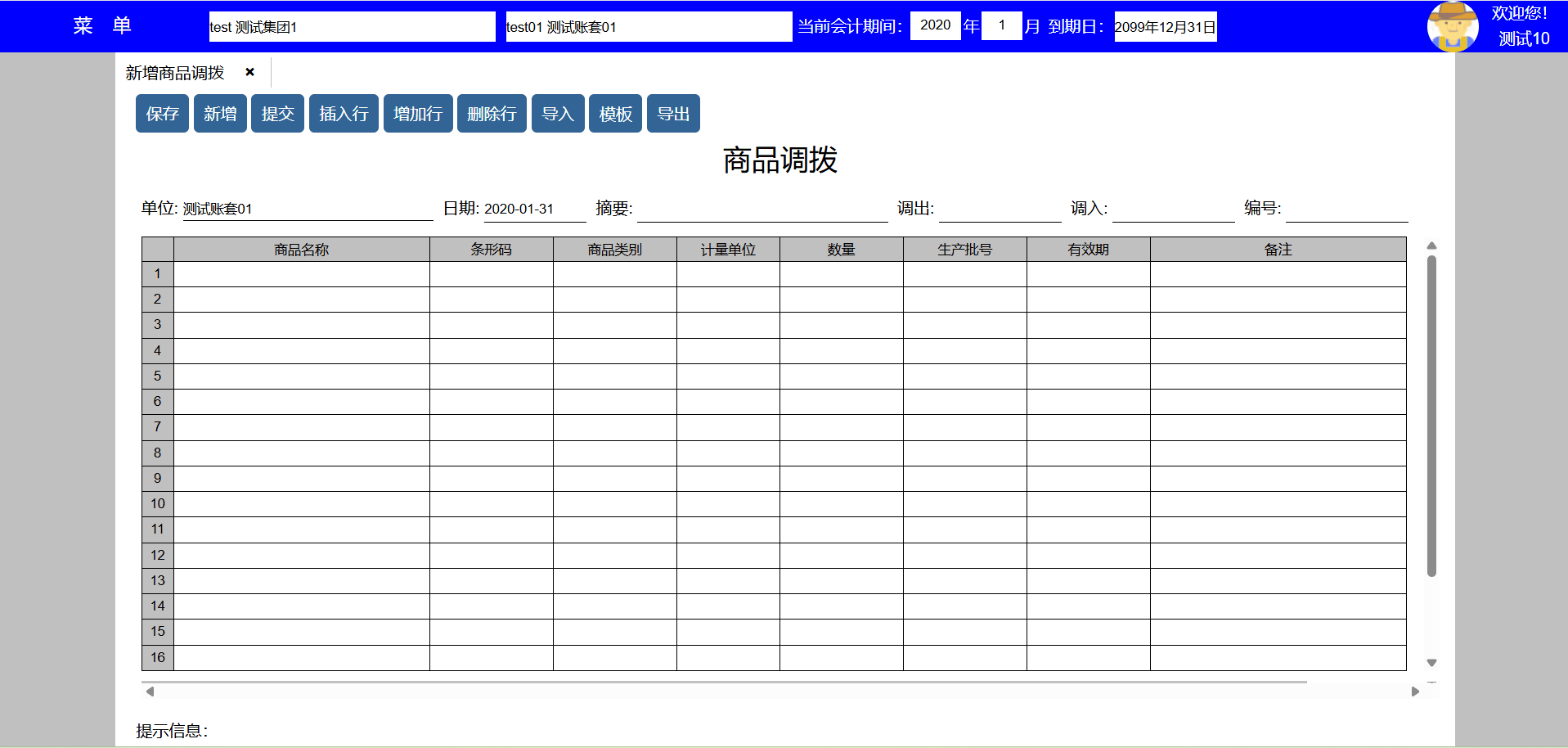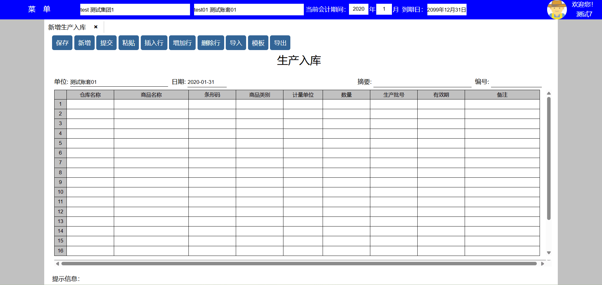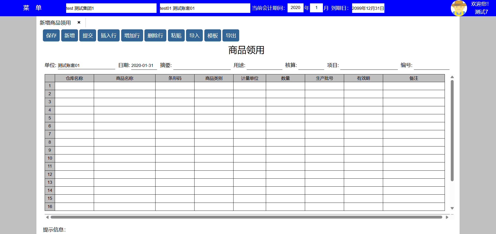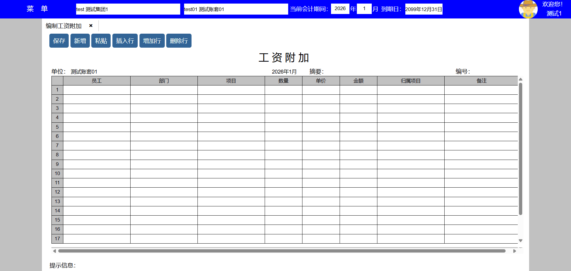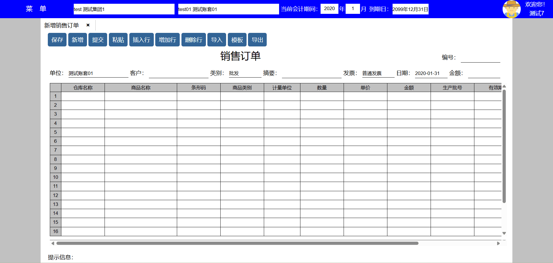 主要功能:保存、新增、保存并新增、粘贴、插入行、增加行、删除行。