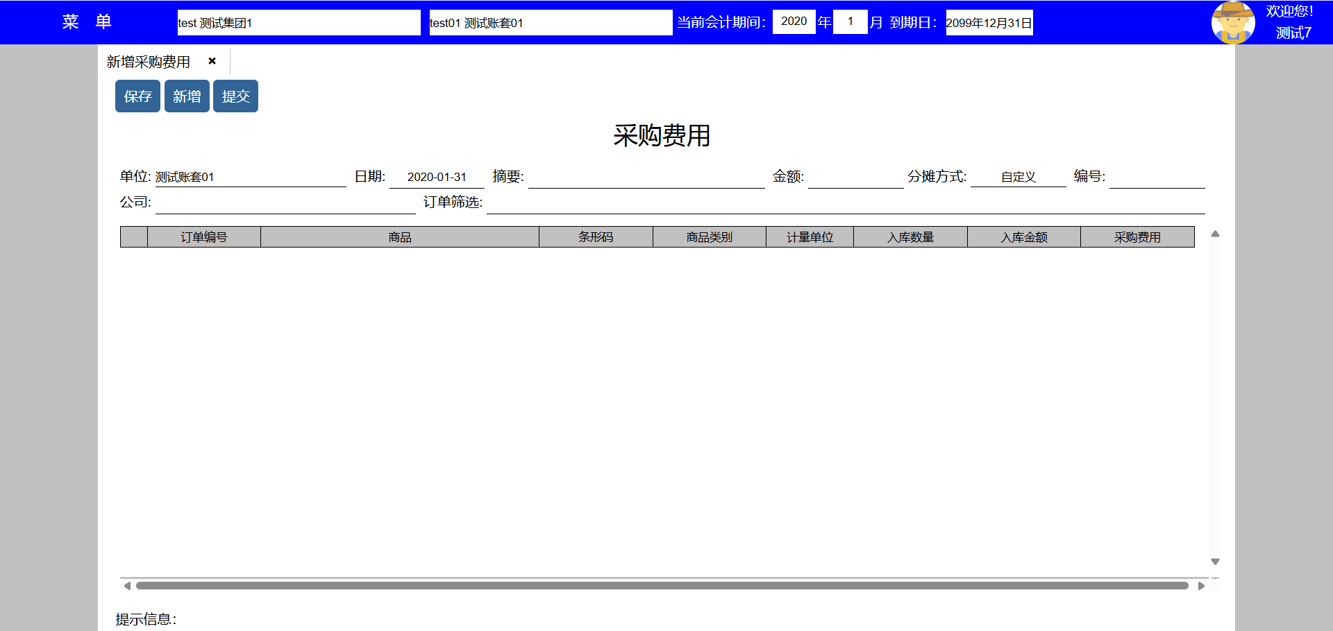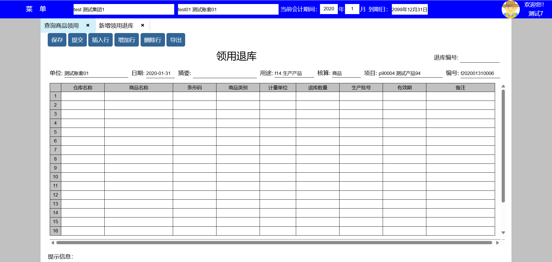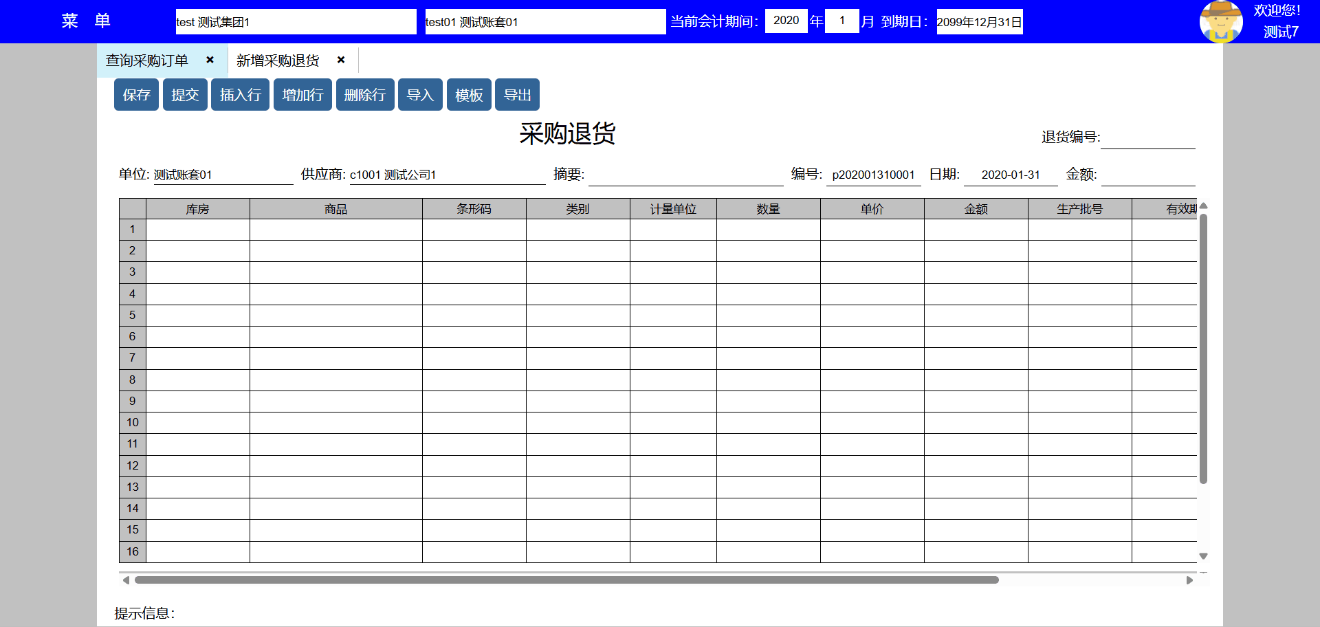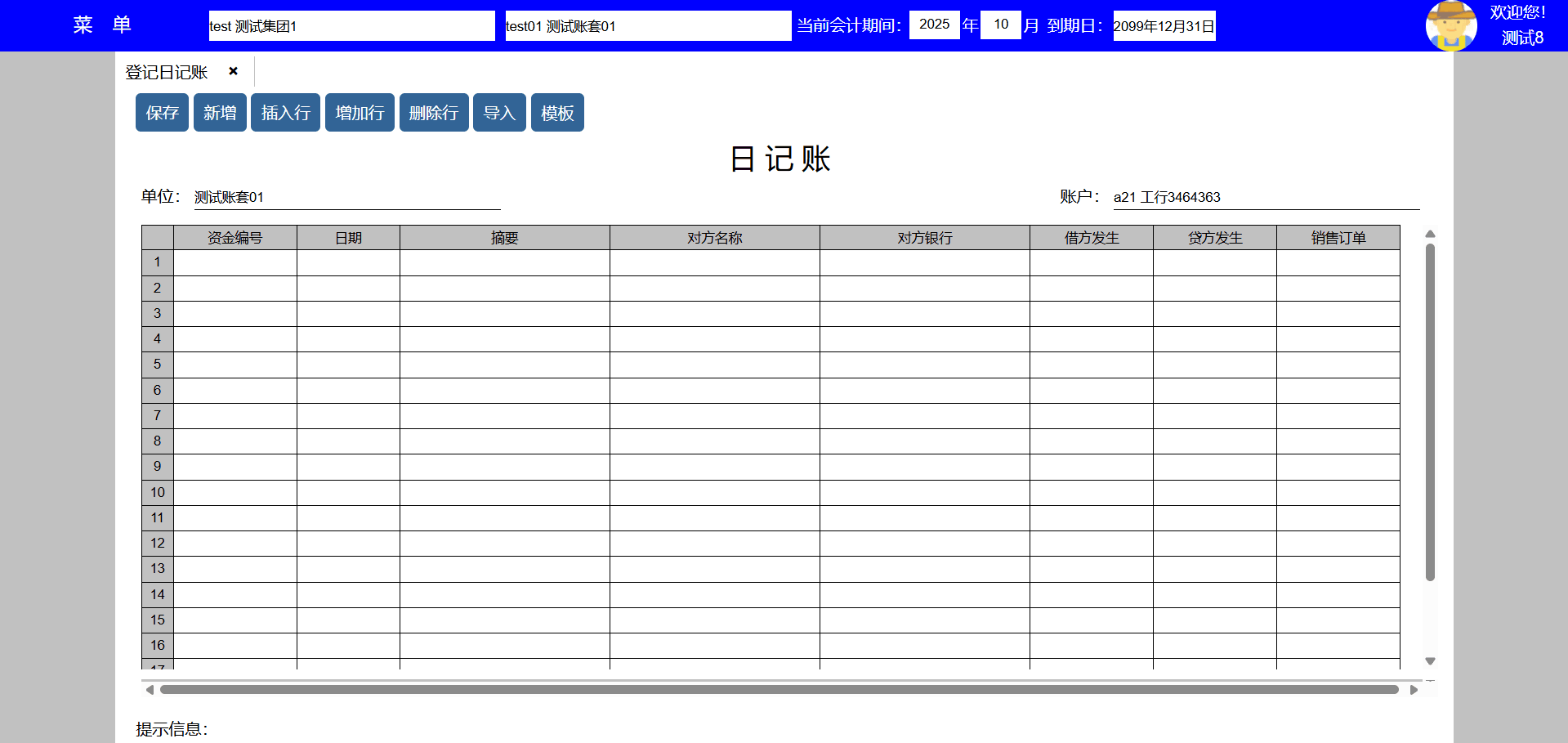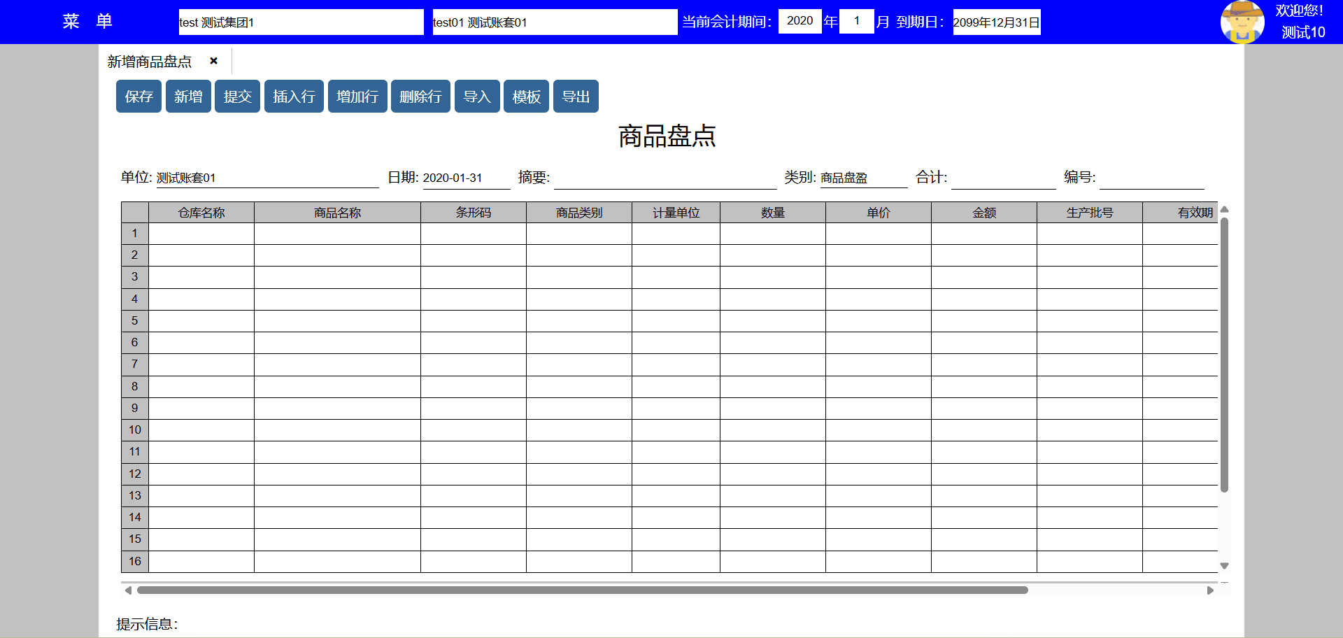 主要功能:保存、新增、保存并新增、粘贴、插入行、增加行、删除行。