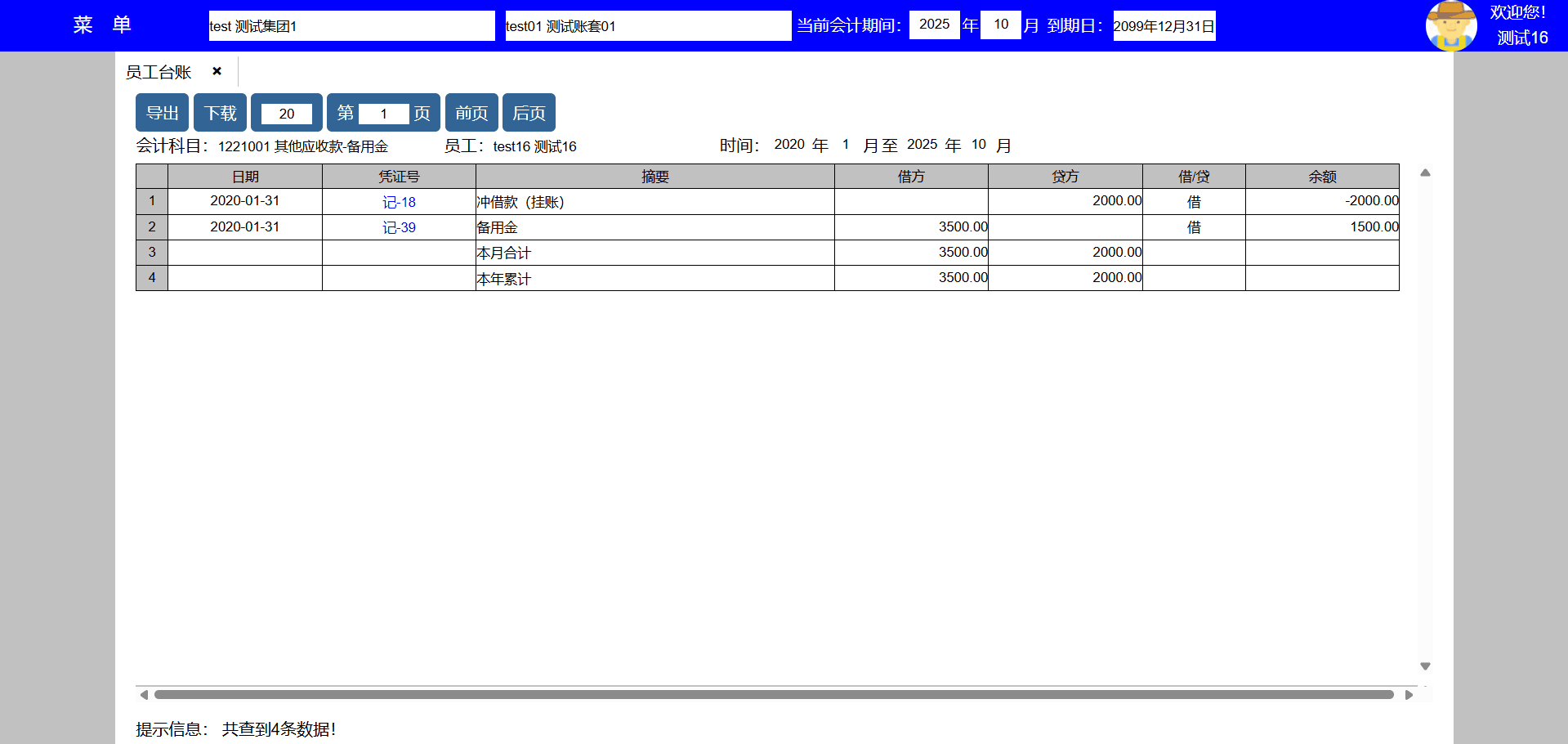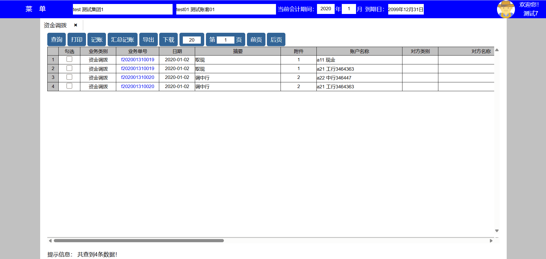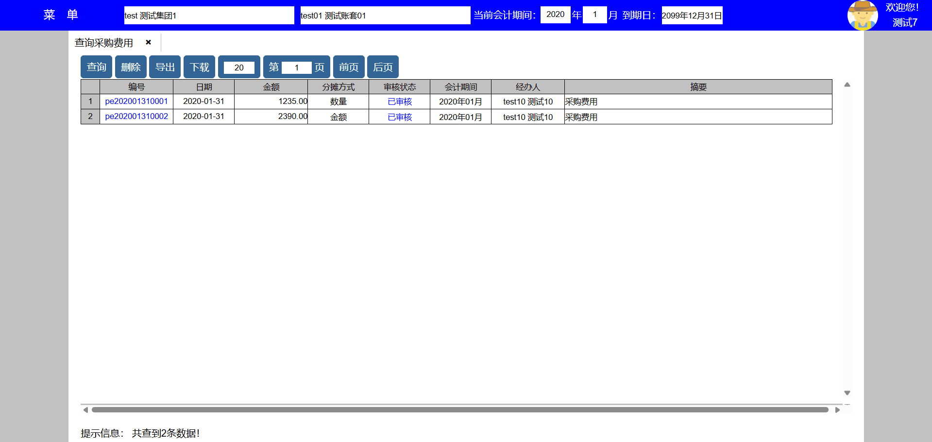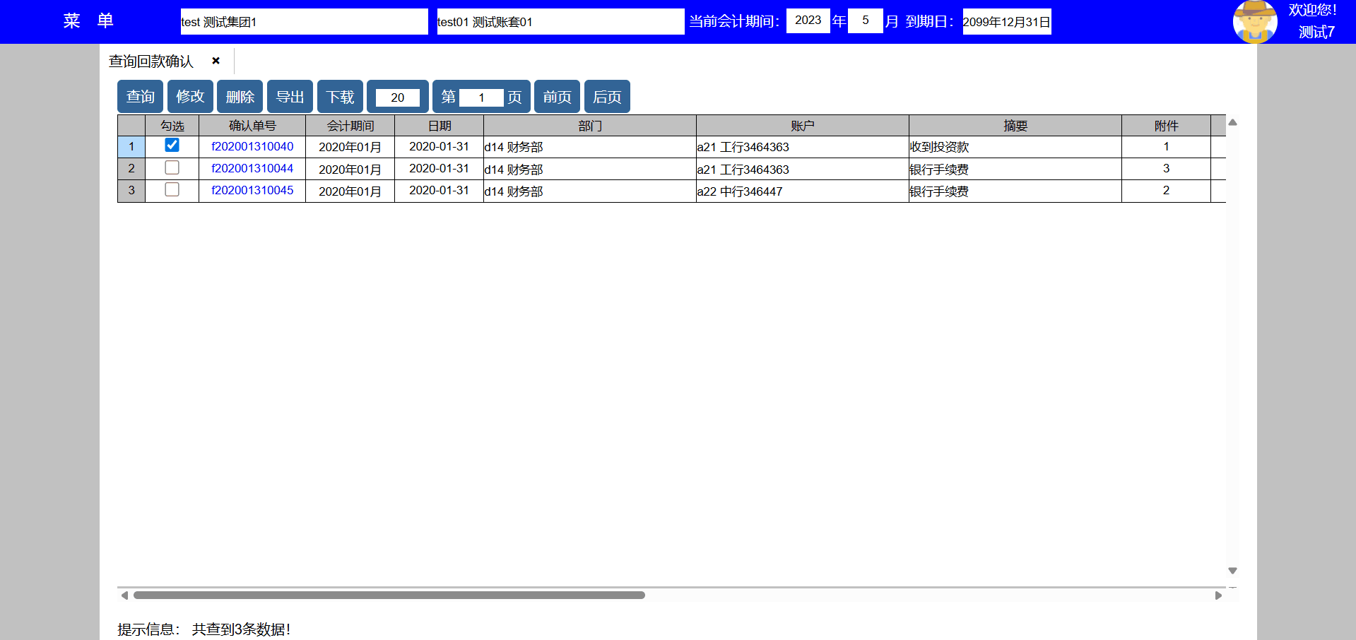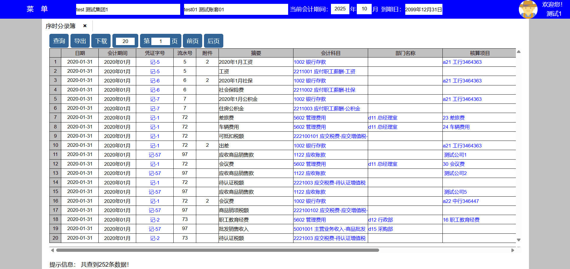 主要功能:查询、打印、修改、删除、复制、导出、下载、每页显示凭证数量、显示页数、向前翻页、向后翻页。