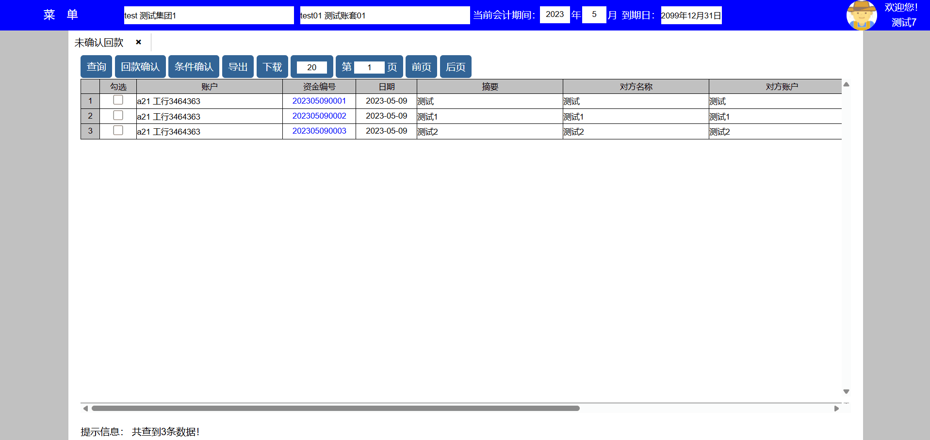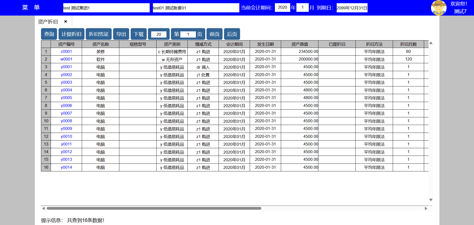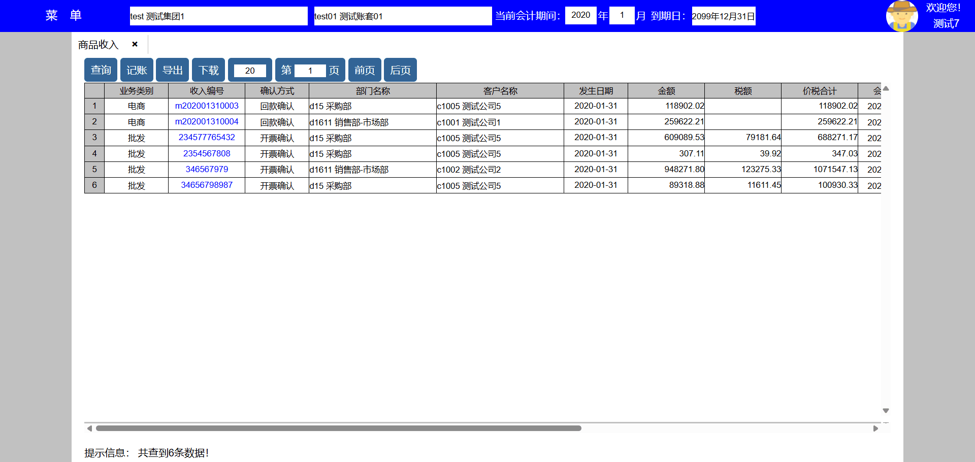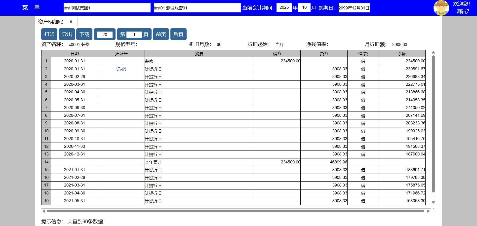 主要功能:查询、打印、修改、删除、复制、导出、下载、每页显示凭证数量、显示页数、向前翻页、向后翻页。
