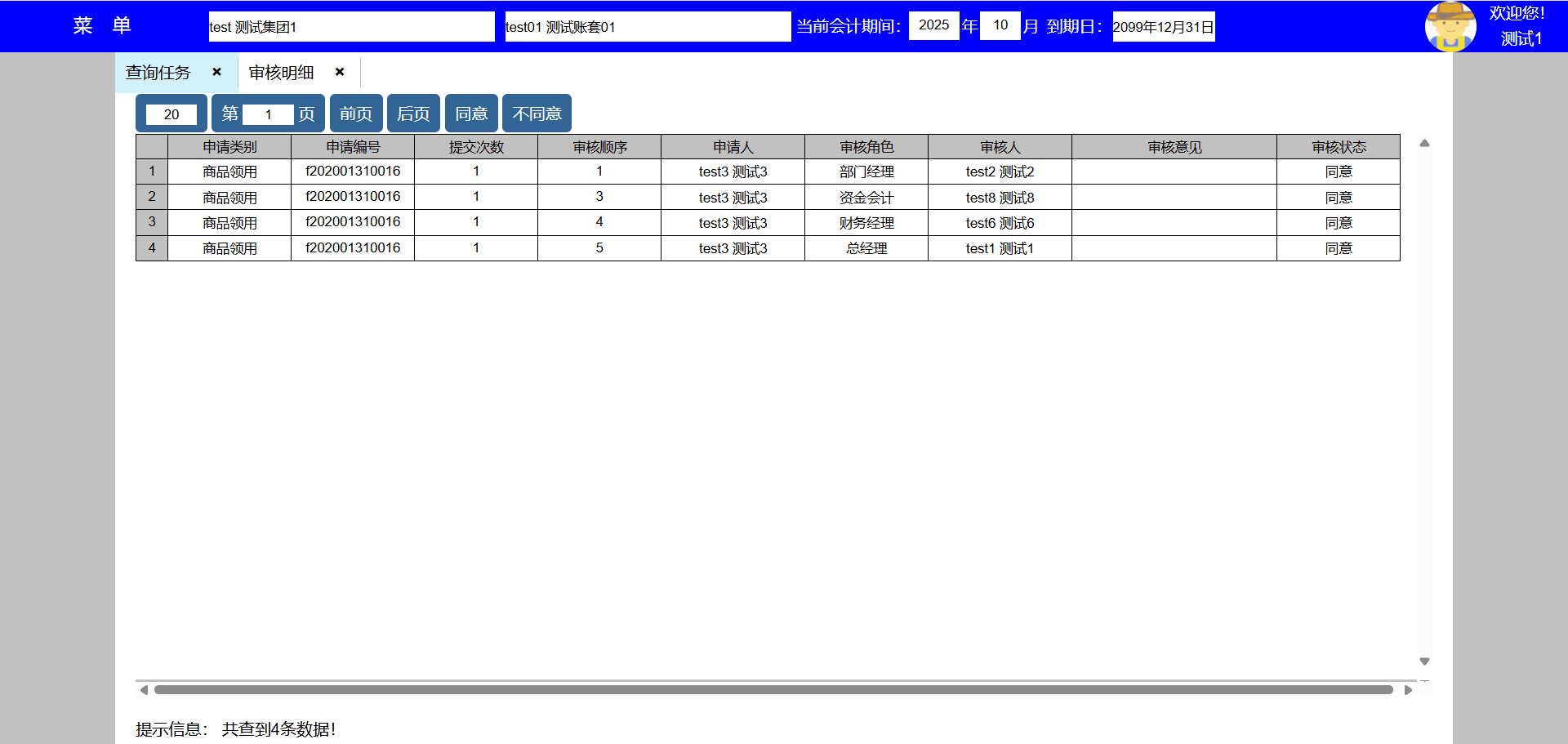 5、经办人又是审核人,不会参与审核,系统会自动跳过审核节点,同一人拥有多个角色,只会审核一次,其实审核节点会自动跳过;