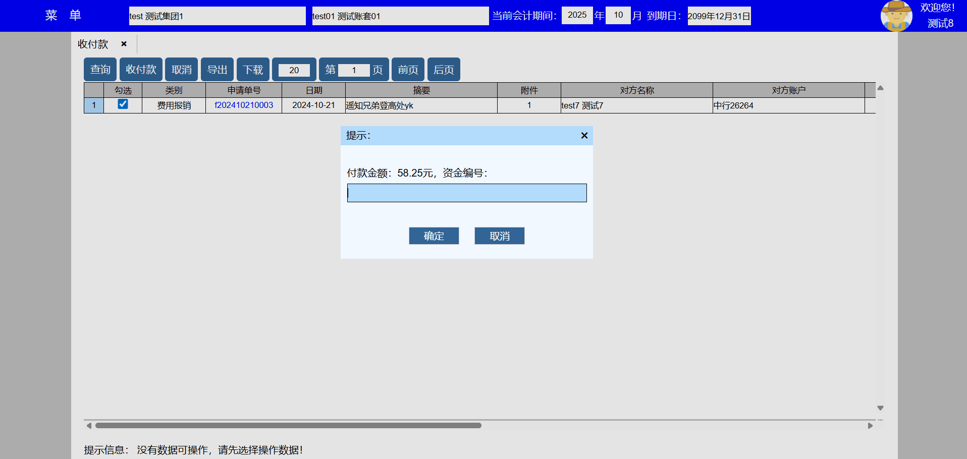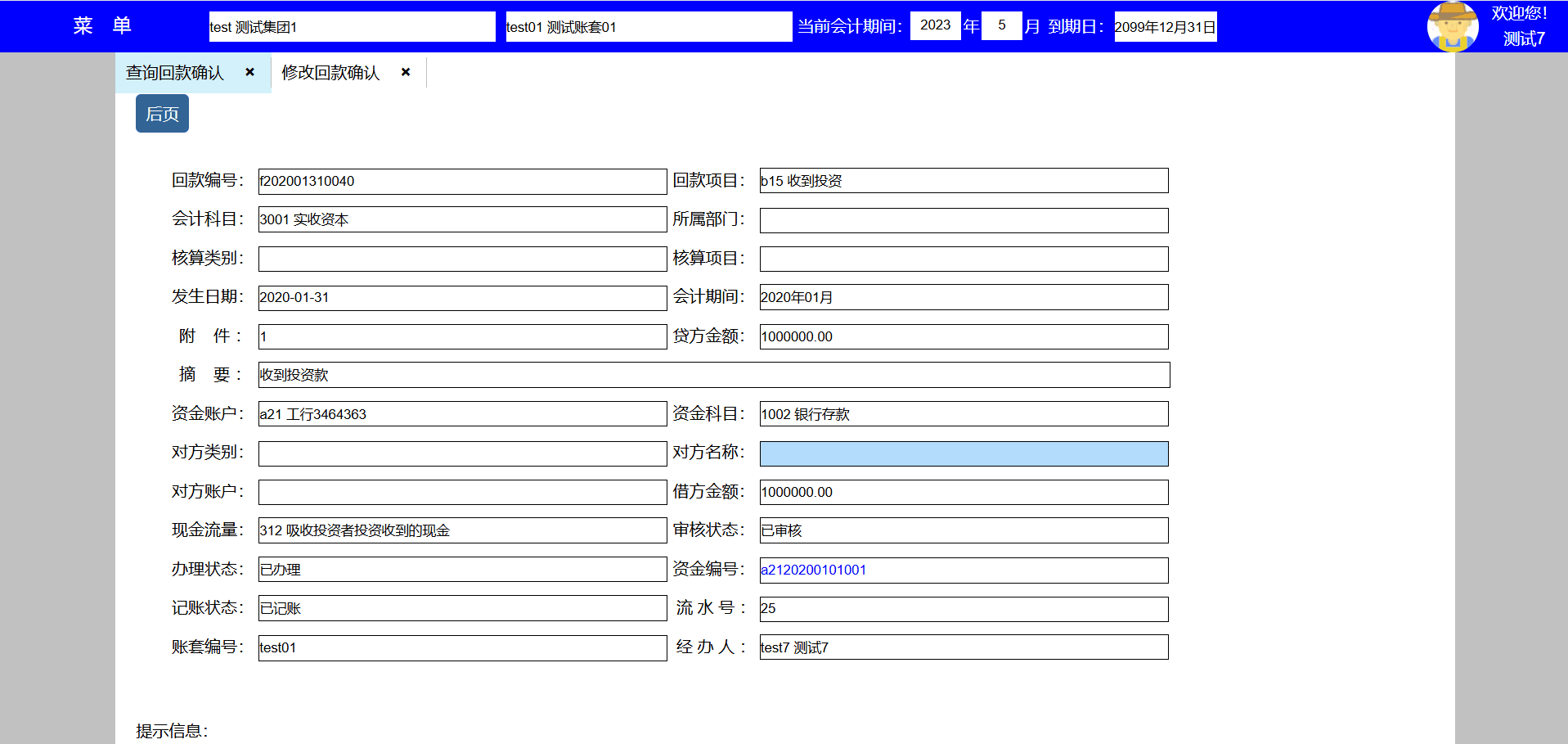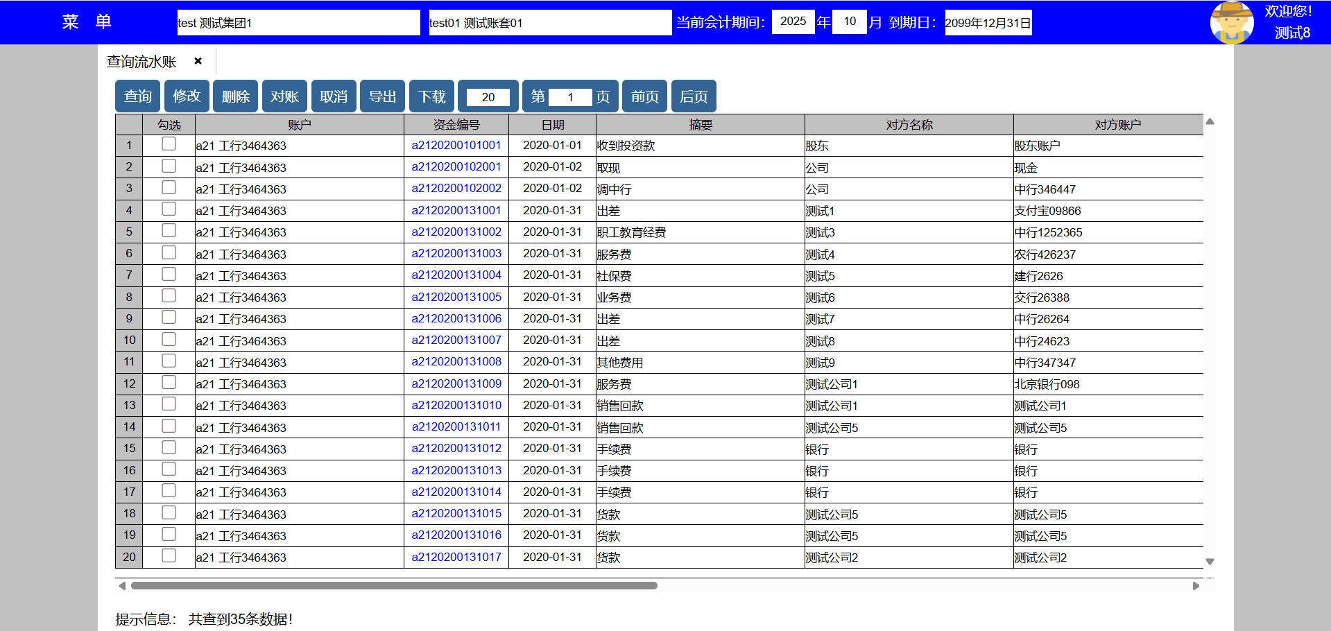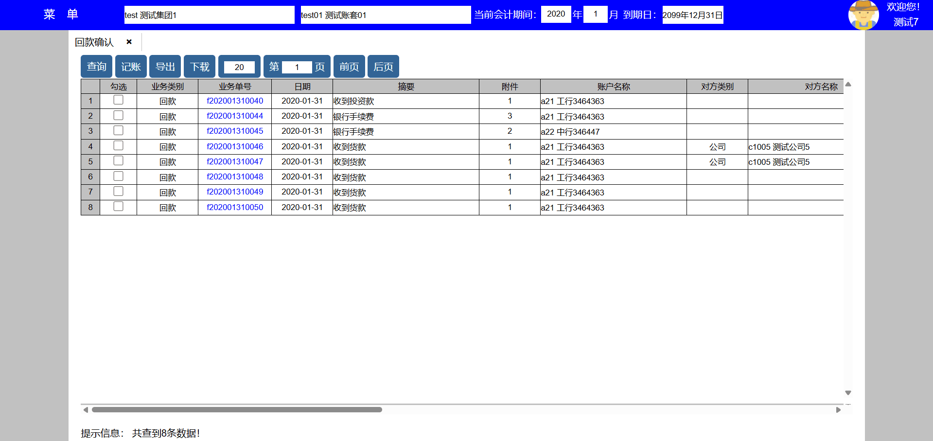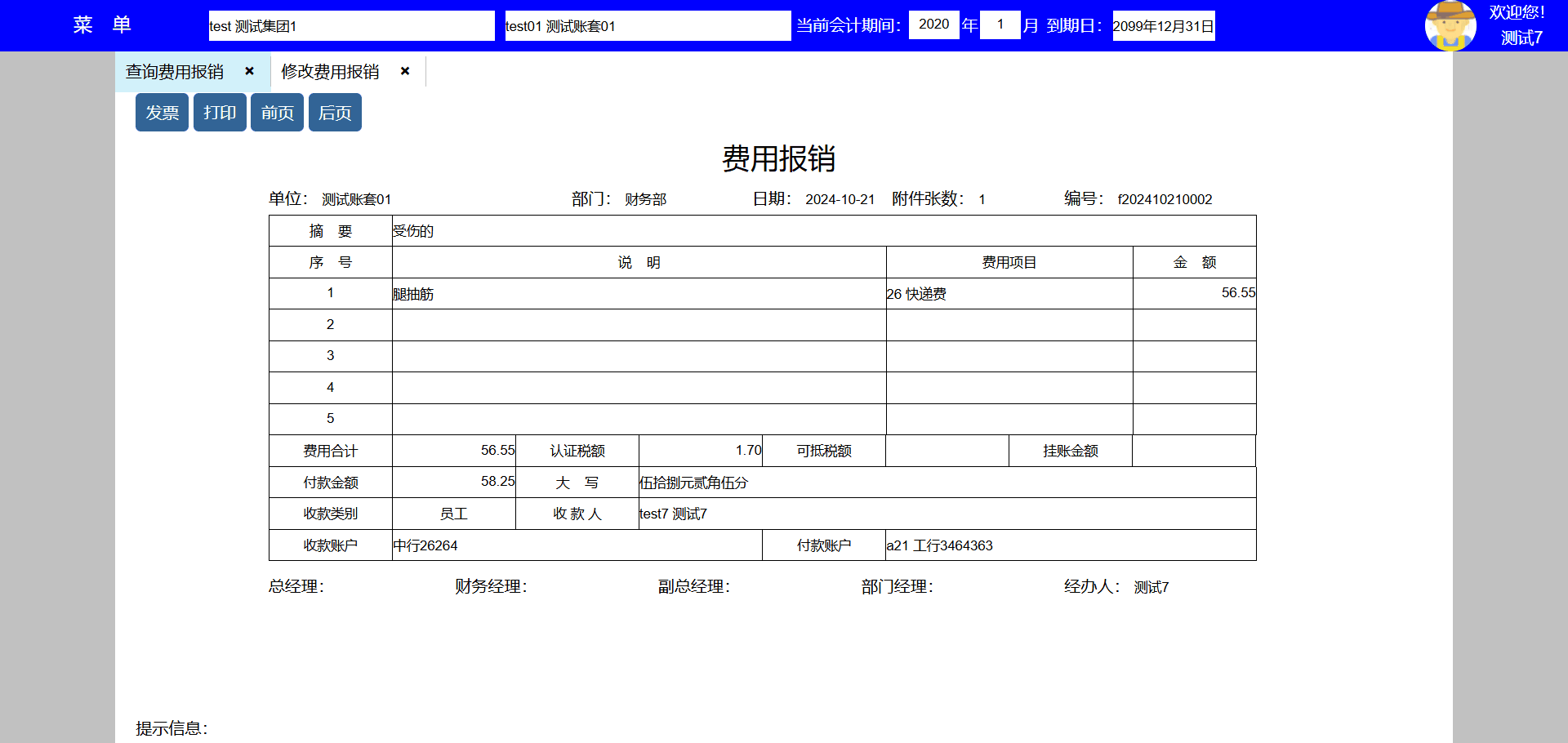 3、个人账户发生变化时,可新增、修改、删除账户信息,新发生的收款业务出纳会使用新账户, 已发生业务的收款账户信息不会发生变化。