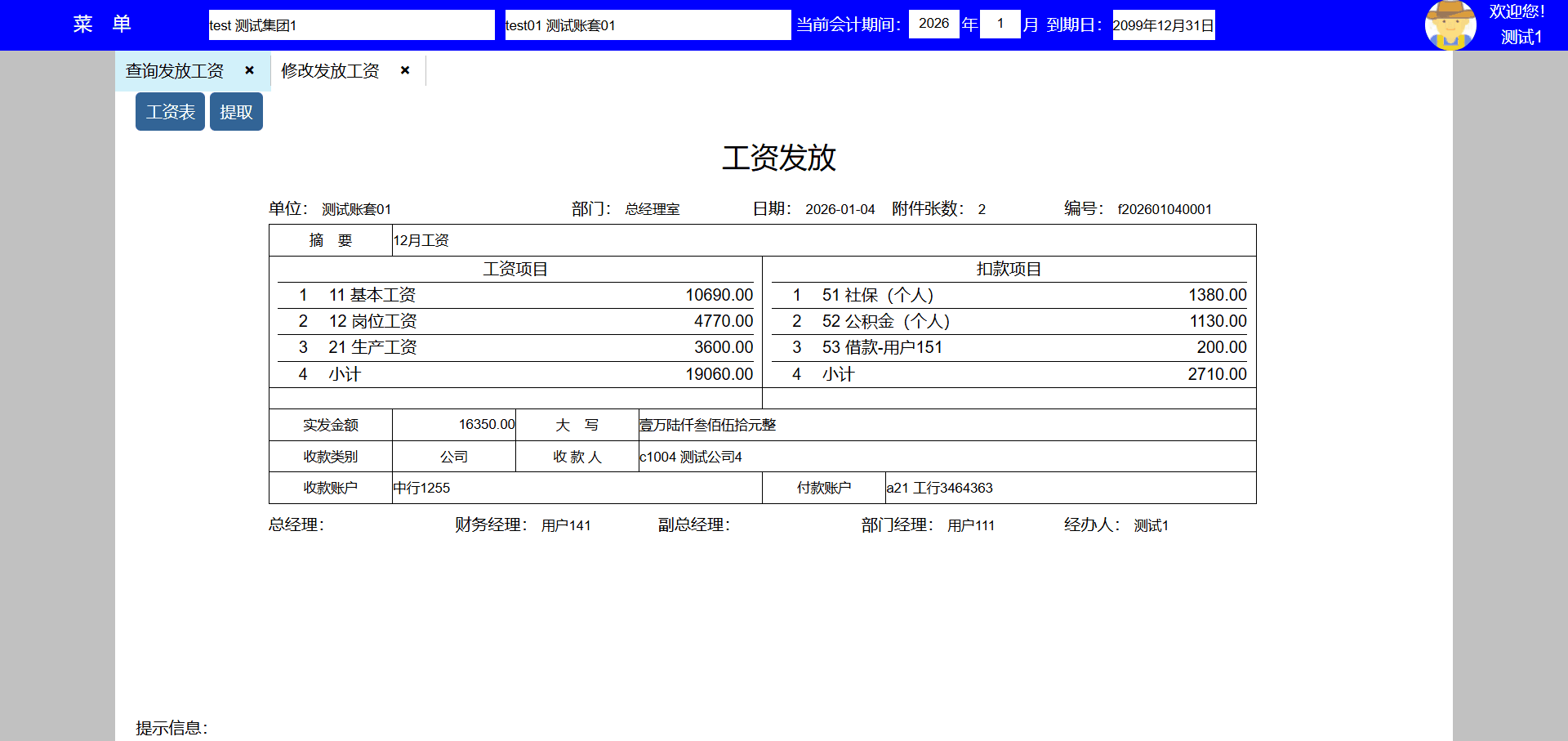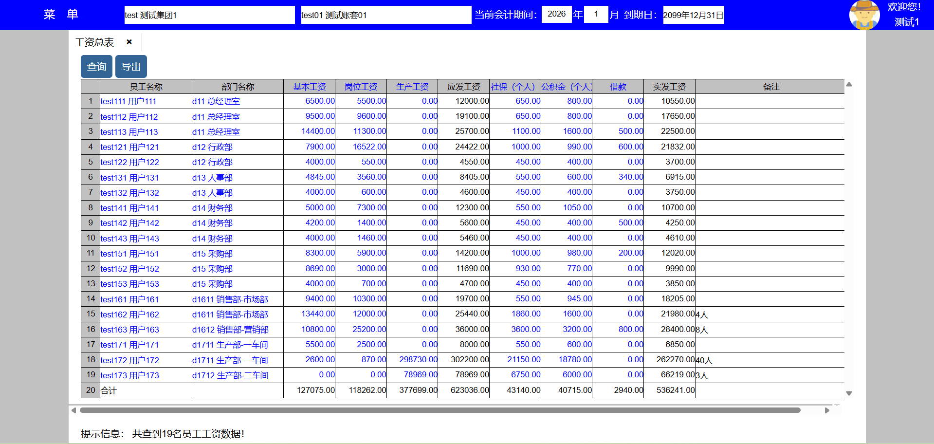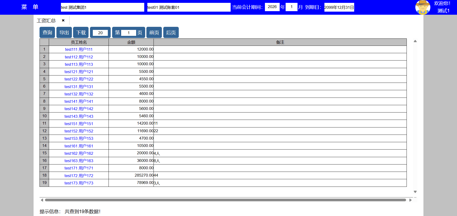 | test143 | test143 | 财务部 | 员工,出纳 | 出纳 |