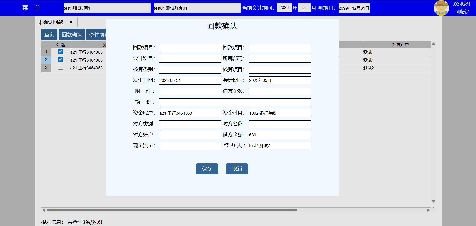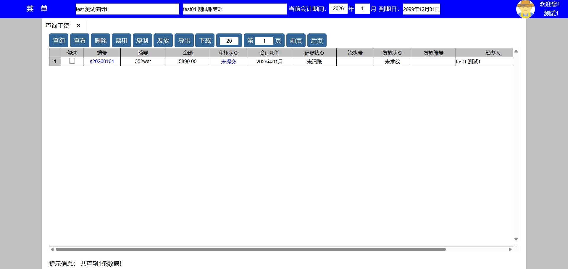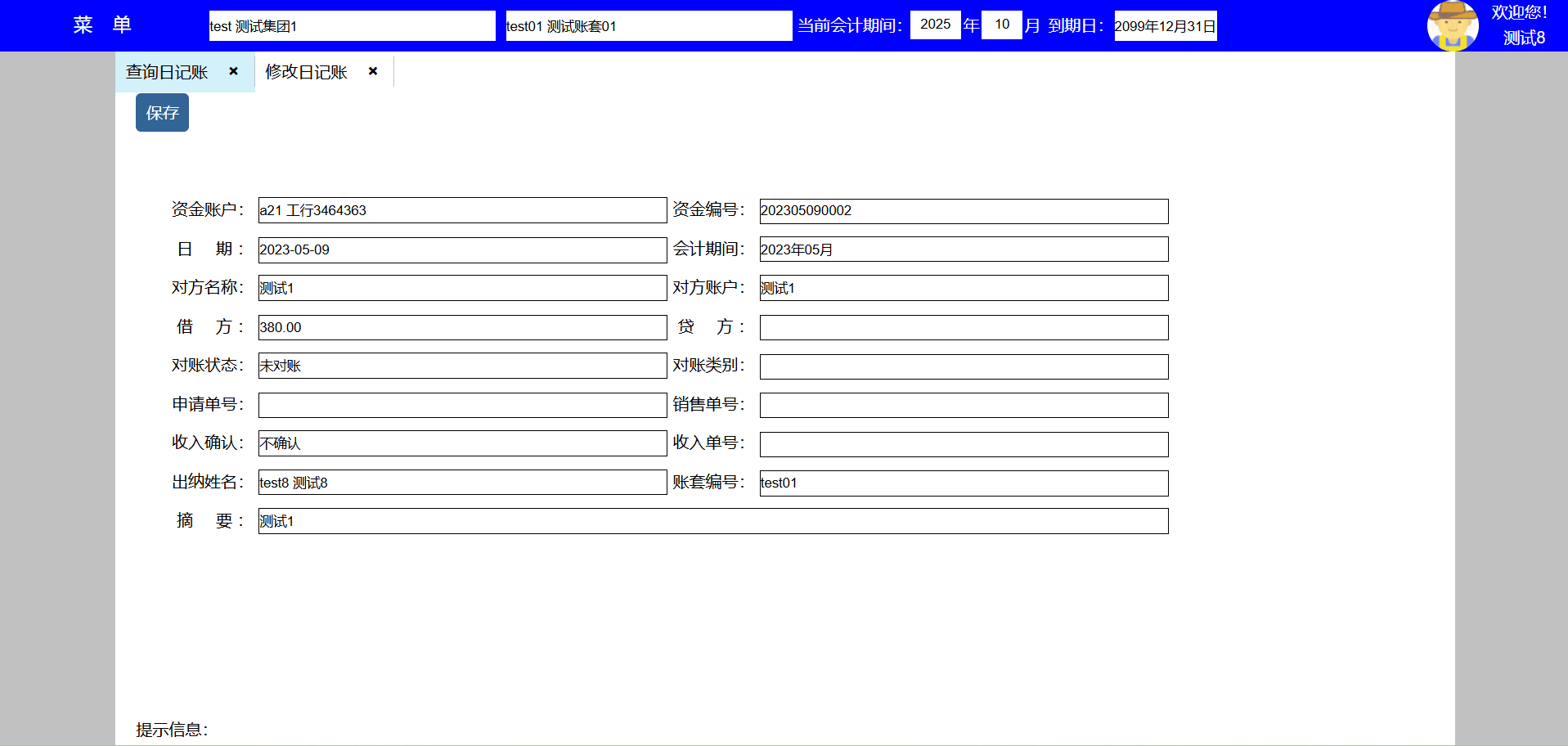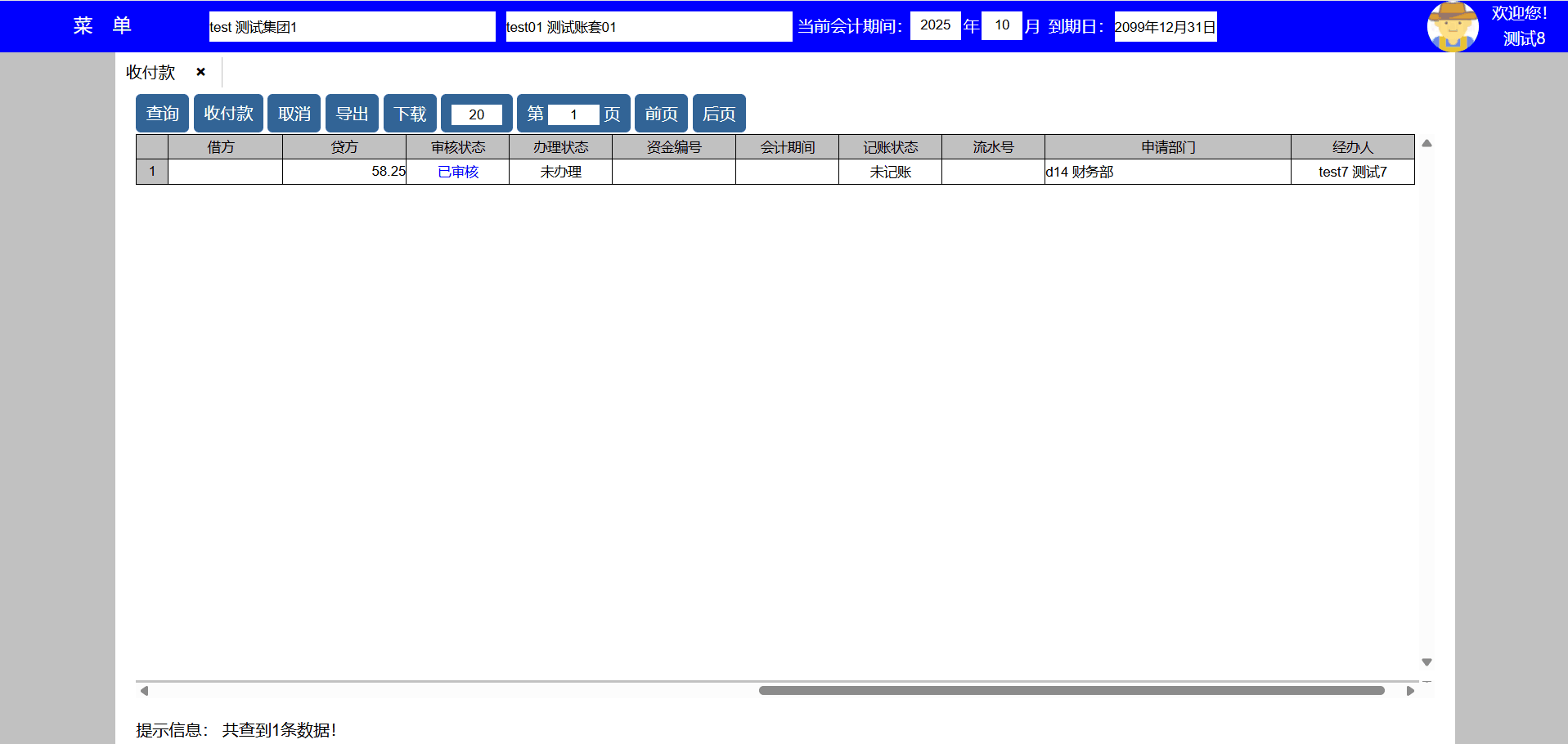 | test143 | test143 | 财务部 | 员工,出纳 | 出纳 |