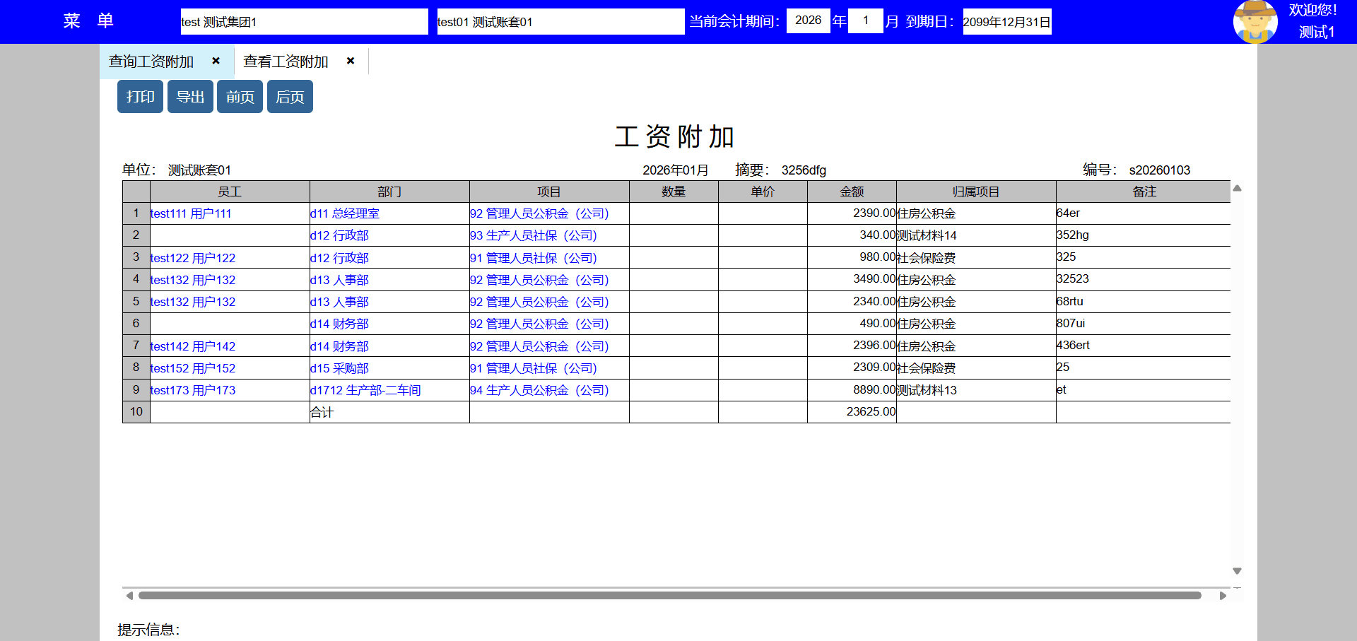 10、数据区点击项目编号可追踪查询当前工资附加项目。
