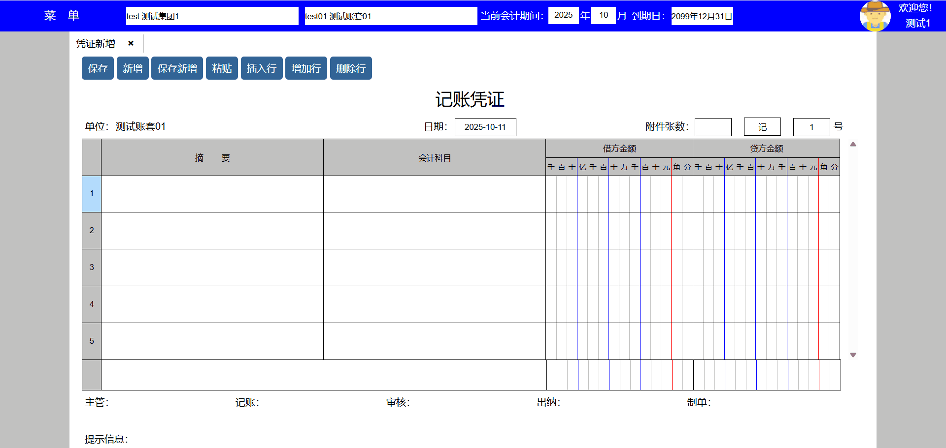 5、摘要、会计科目、部门核算、核算项目、借方、贷方录入不分先后顺序,但必须录入完整,否则当前行无效或无法保存;