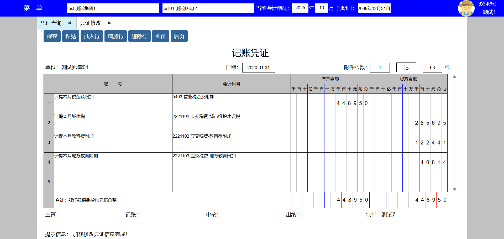 8、借贷方合计相等,自动显示大写金额,借贷方合计不相等无法保存;
