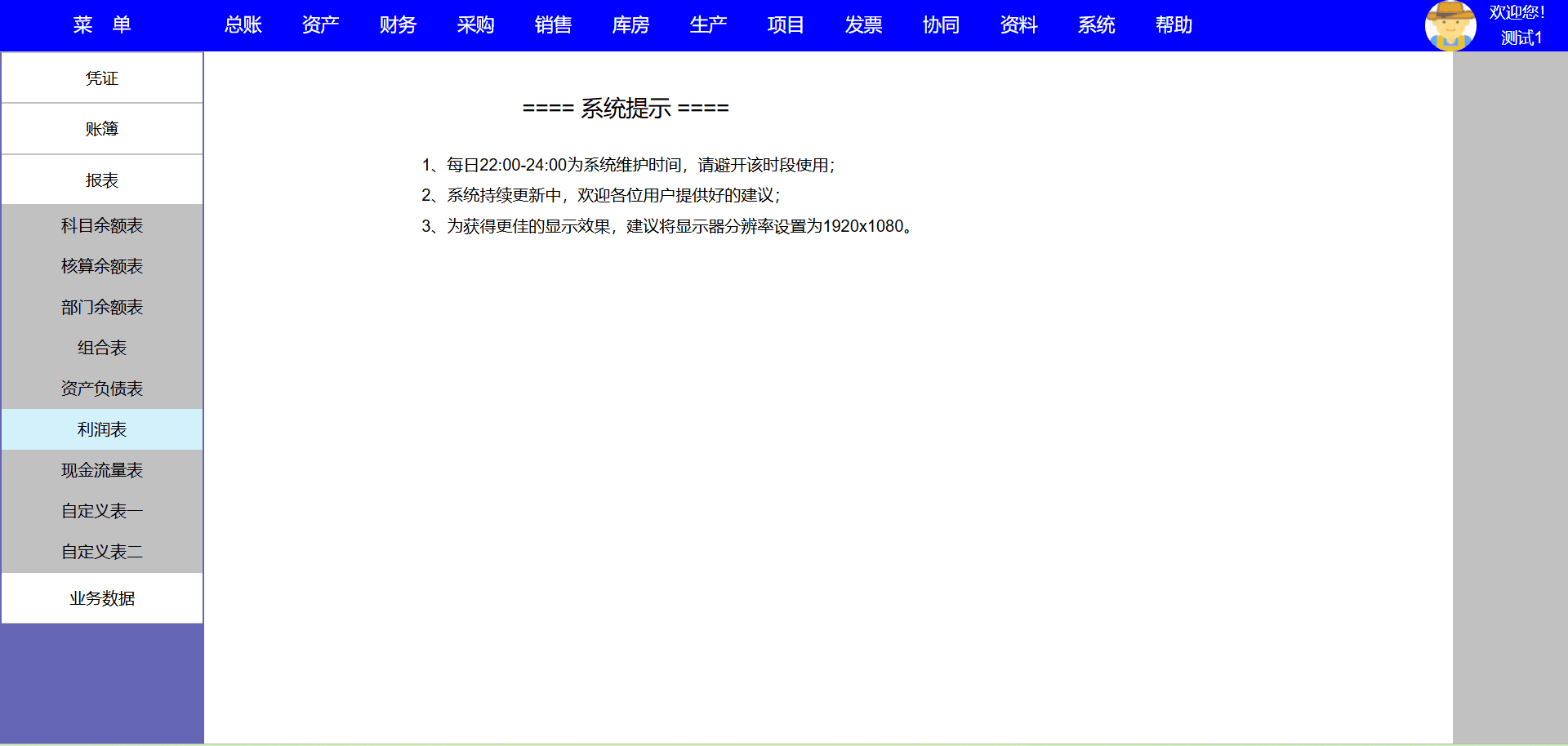10、本系统利润表是按损益类科目发生额计算,损益类科目需要冲销时请录入负数;