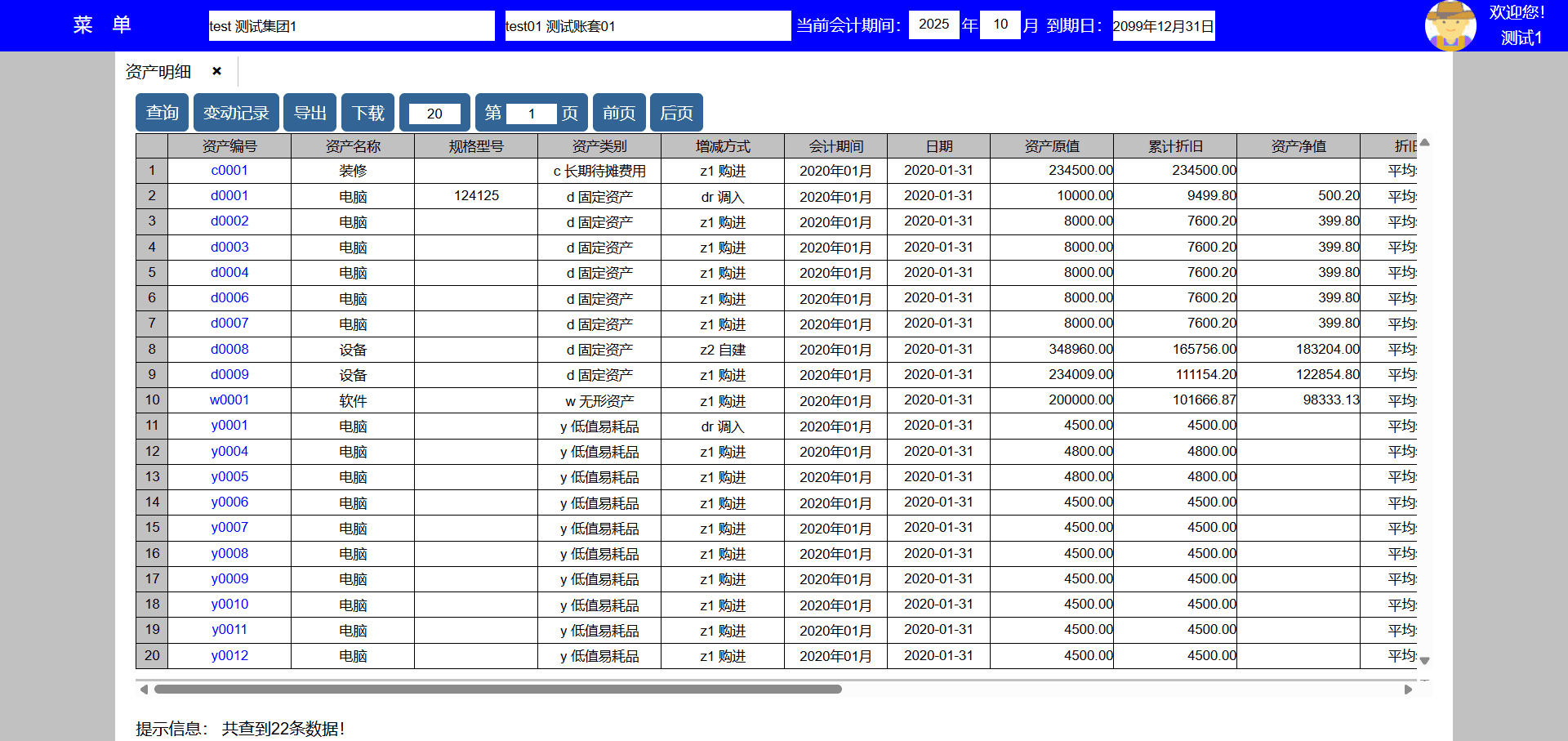 10、数据区点击类别编号可追踪查询当前资产增减方式。