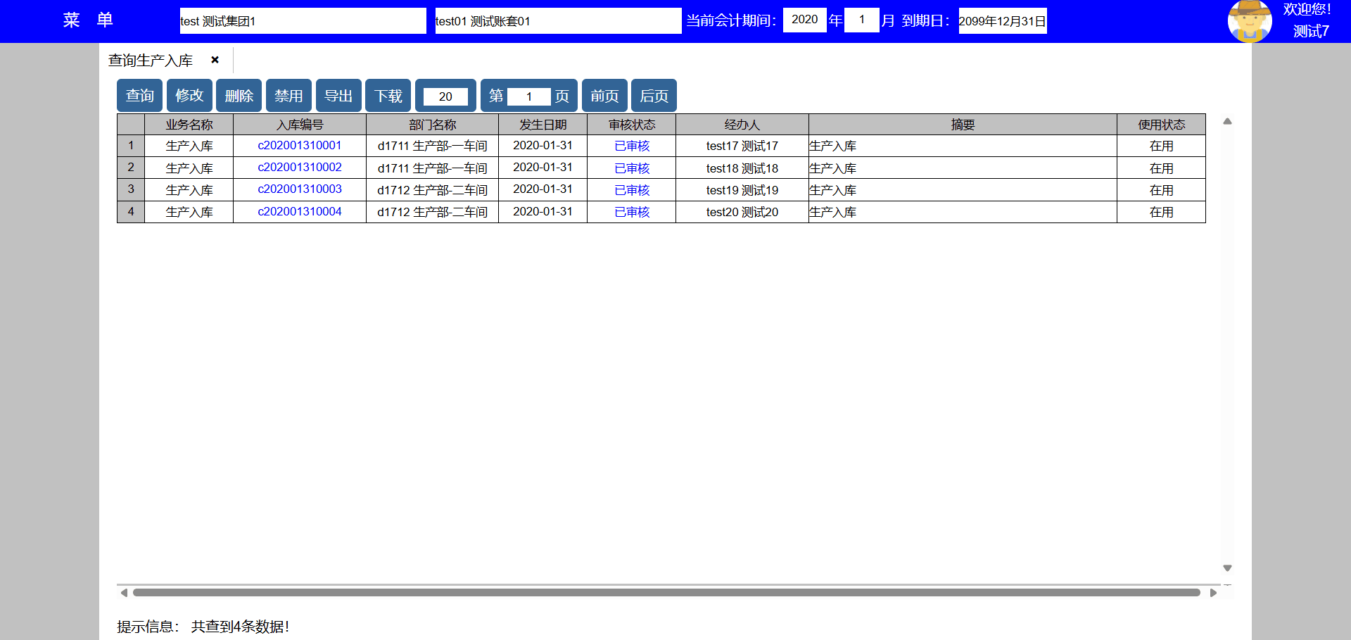 | test171 | test171 | 一车间 | 员工,生产 | 生产经理 |
