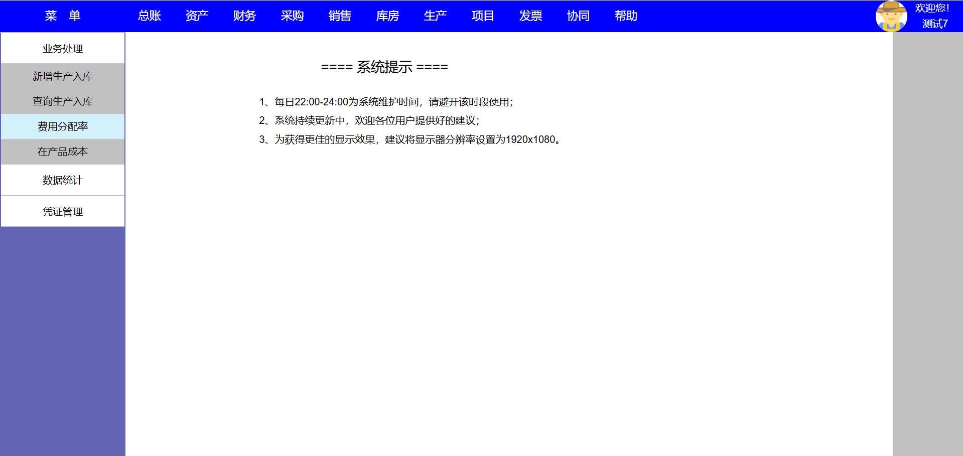 8、启明星不再区分原材料、产成品、自制半成品、在产品,计算生产成本时仅需录入制造费用分配比例(如果有在产品还需录入在产品、 完工产品分配比例),其他由程序自行判断,不再进行繁琐的配置、录入,统一按照加权平均法自动计算生产成本。