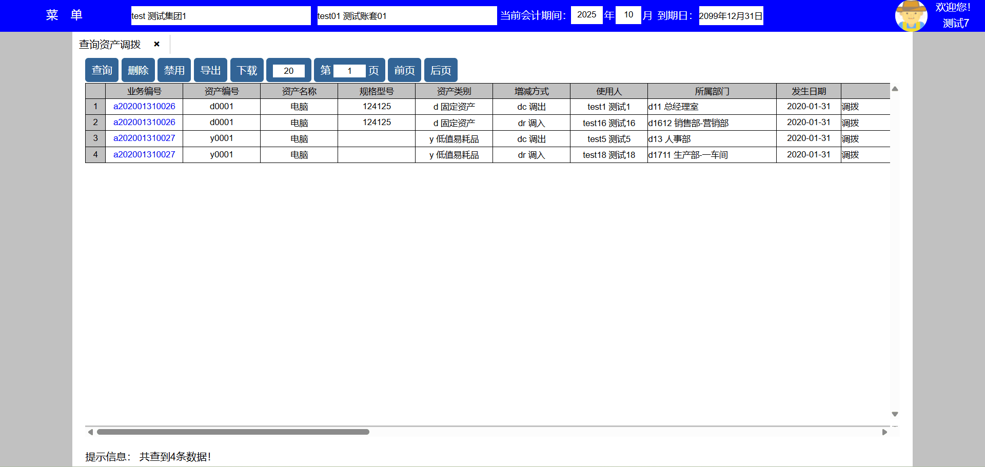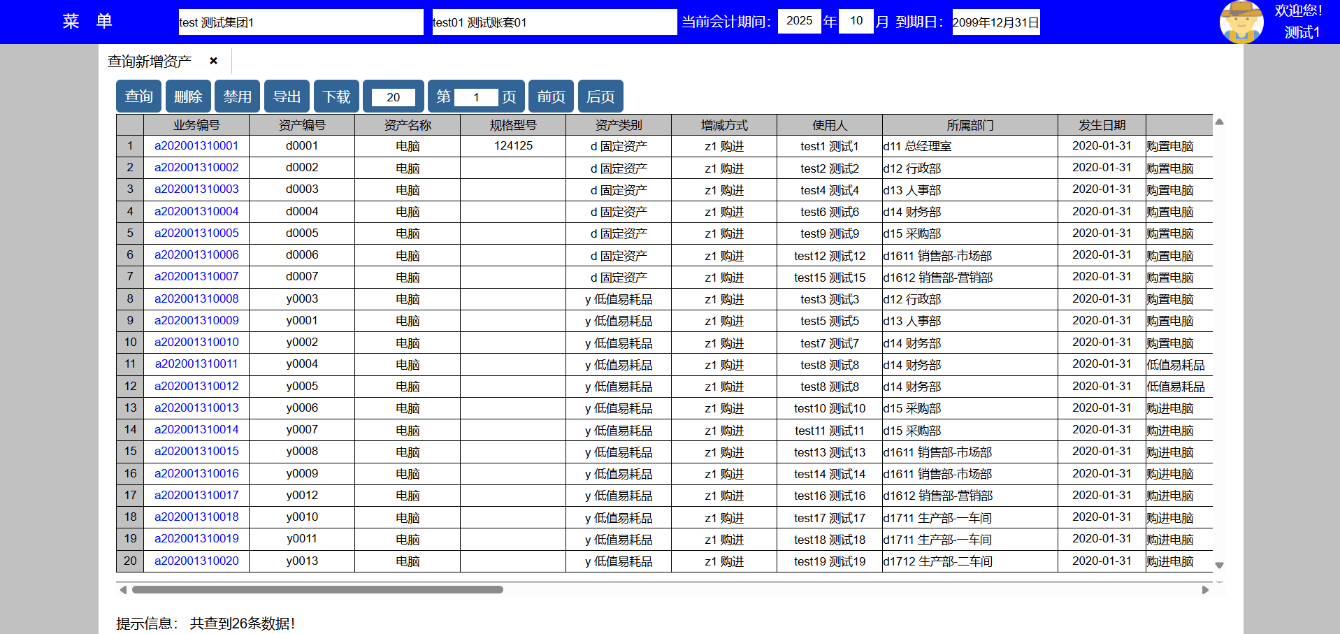 | test132 | test132 | 人事部 | 员工,人事,资产 | 人事员工 |