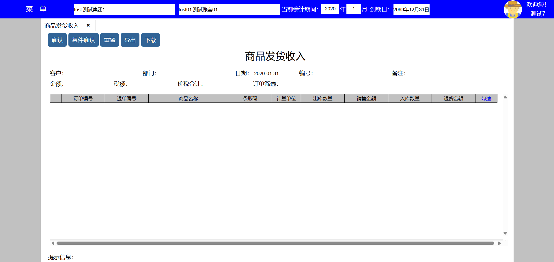 2、如果今天日期属于当前会计期间,日期默认为今天,否则为月末最后一天;