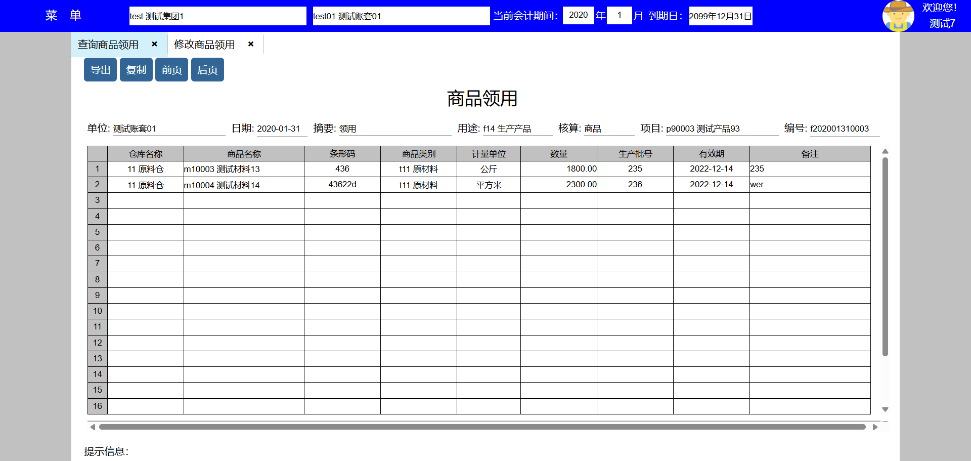 使用说明:1、领用项目为全集团统一,新增账套时不用重先设置;