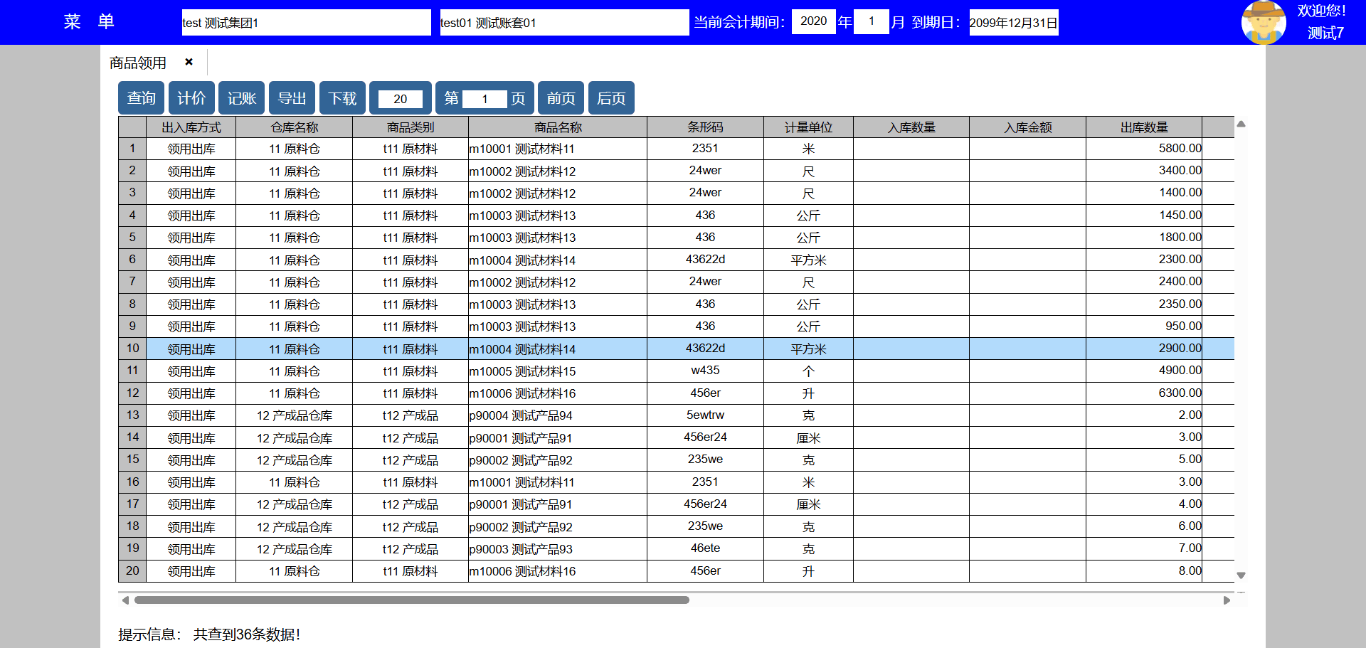 10、数据区点击项目编号可追踪查询当前领用项目。
