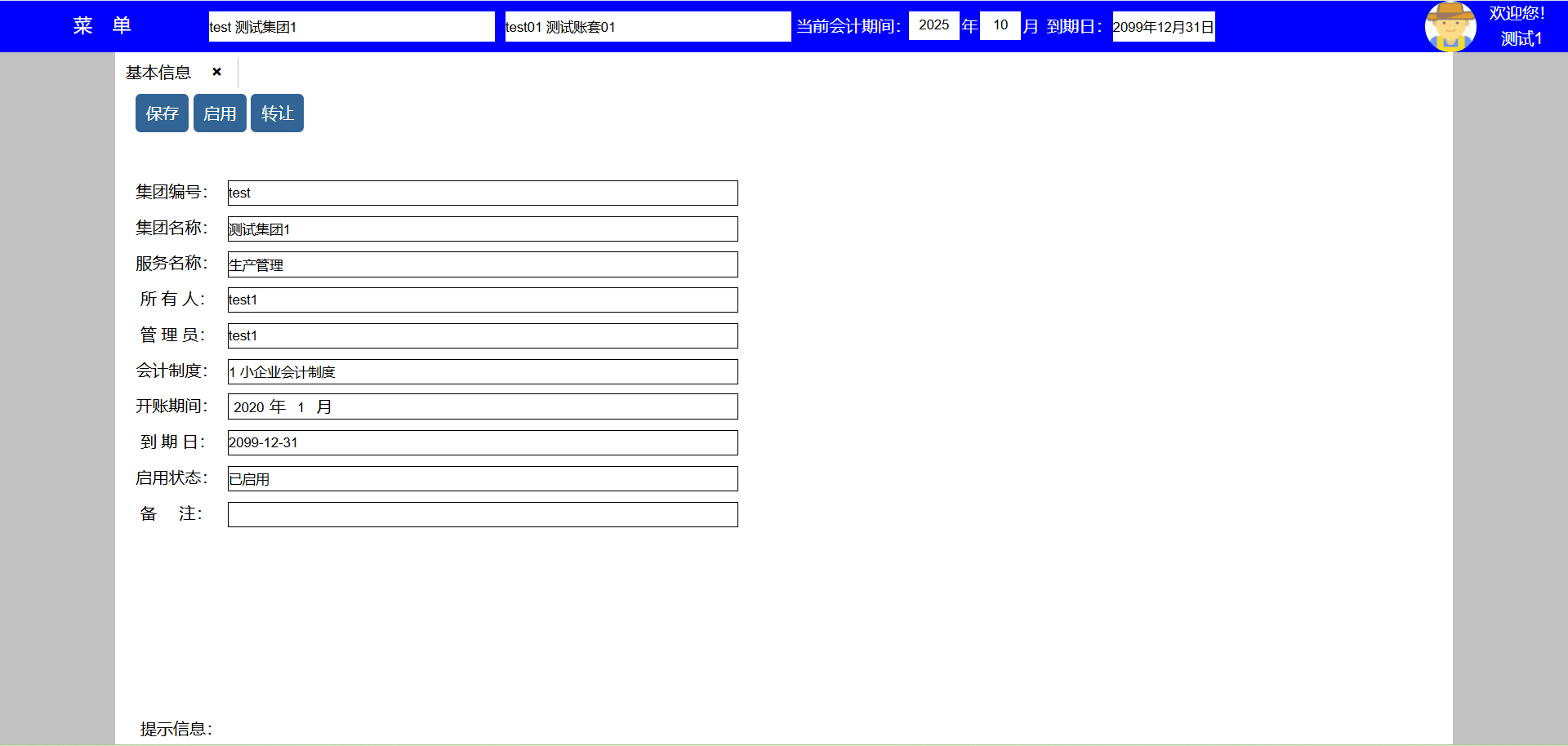 使用说明:1、基本信息在系统实施由管理员完成,启用后只有转让,修改系统管理员、备注信息;