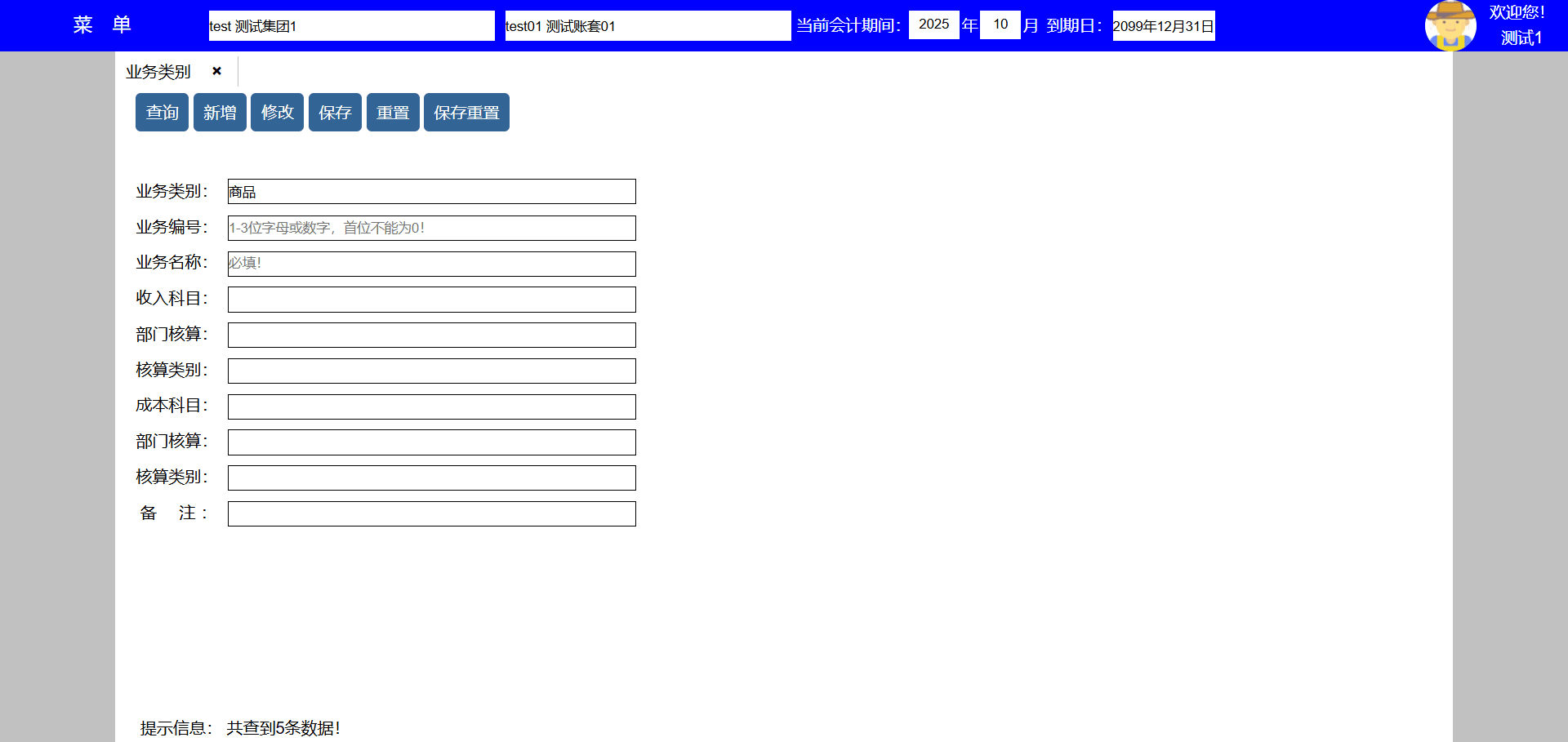 位置:系统——系统设置——业务科目。