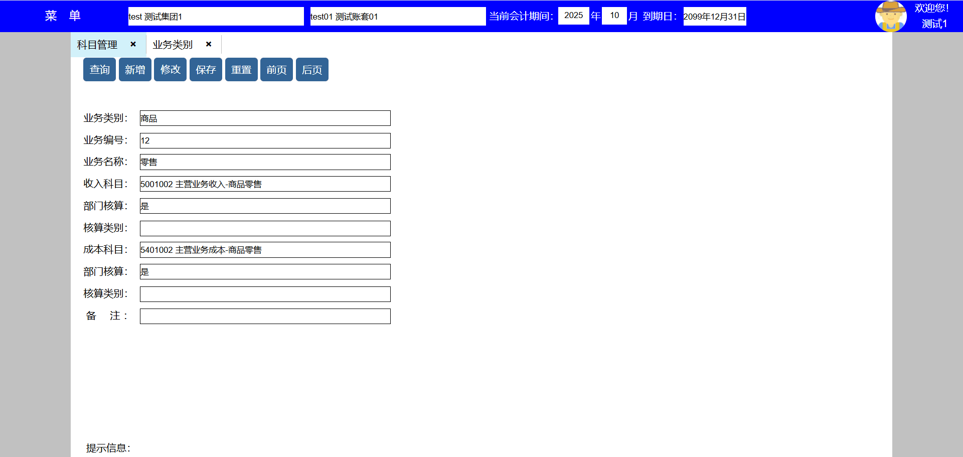 业务科目