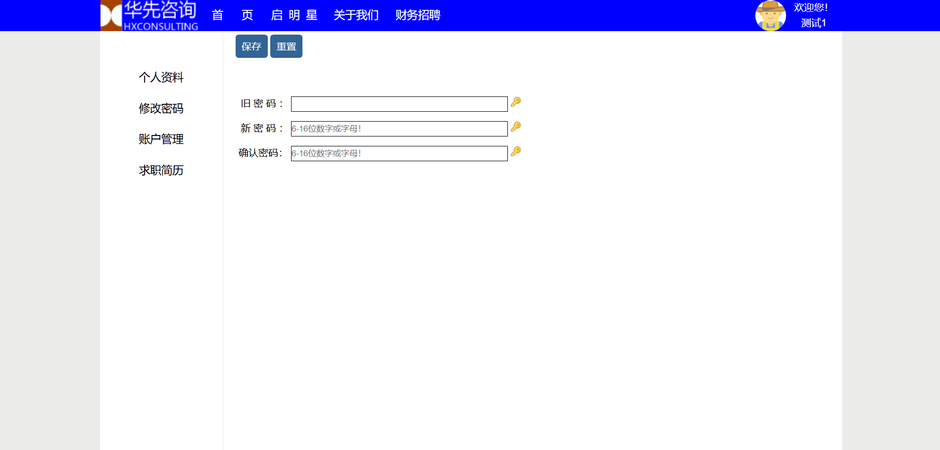 位置:头像——个人中心——修改密码